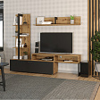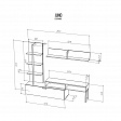 Гостиная включает в себя три предмета: полку навесную, стеллаж и тумбу под ТВ. Все элементы изготовлены из качественного ЛДСП толщиной 16 мм, что обеспечивает прочность и долговечность мебели. Фурнитура выполнена из металла, что гарантирует надежность и устойчивость конструкции.