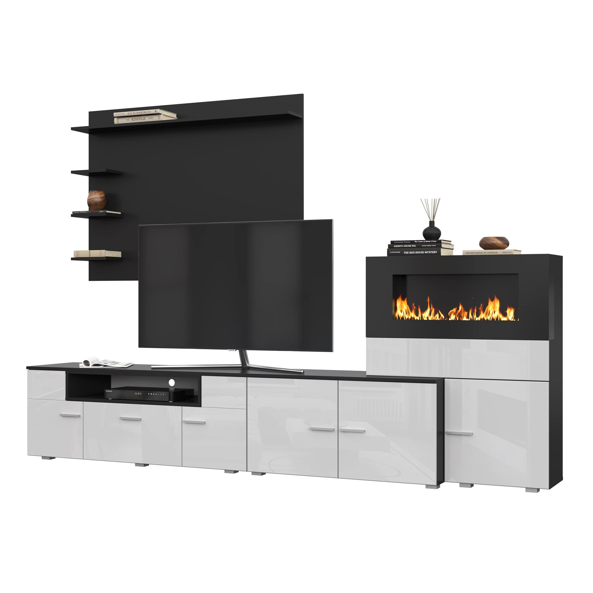 Гостиная НК RALF Черный/Белый глянец с биокамином