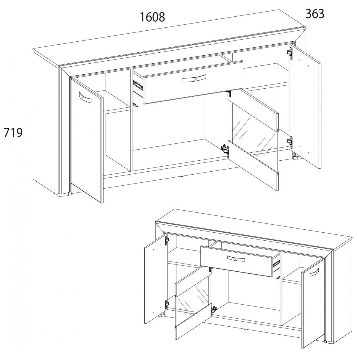 1. Тумба RTV 1V2D1S OLIVIA Вудлайн крем/дуб анкона 1608x363x719 мм