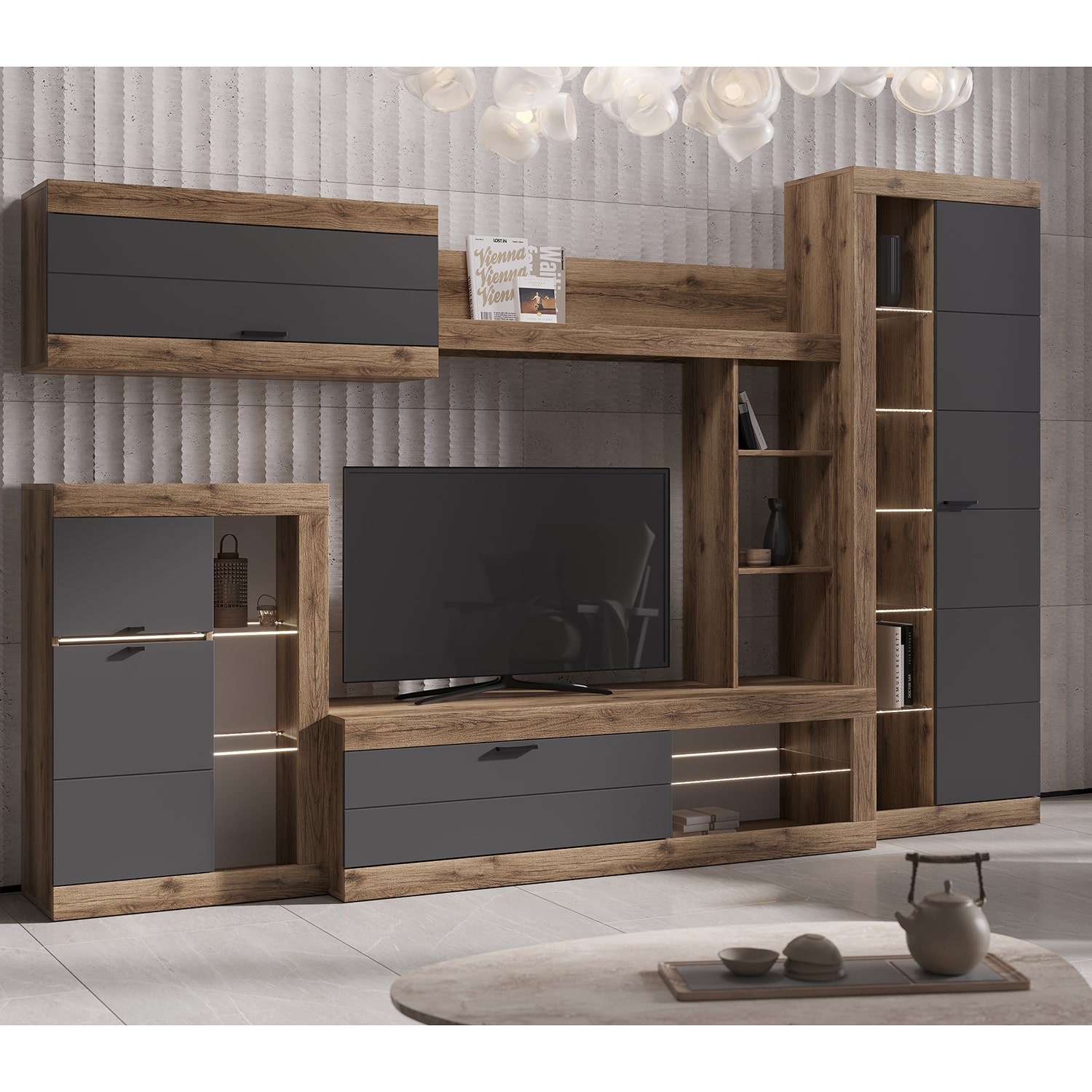 Создать комфортную и красивую гостиную — это искусство, которое требует внимания к каждой детали. Сочетание Дуба Делано с графитом делает мебель одновременно строгой и лаконичной, при этом стильной и уютной, а что самое важное – серый цвет универсальный и классический. Он подходит к любому стилю и сочетается со всей цветовой палитрой.