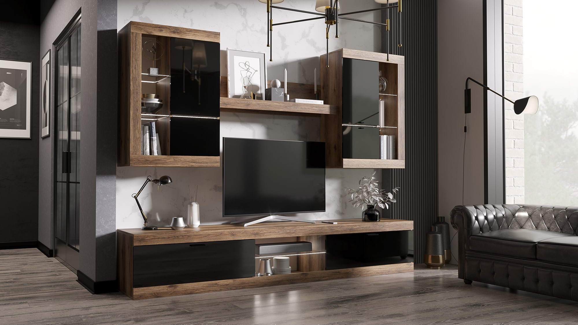 Создать комфортную и красивую гостиную — это искусство, которое требует внимания к каждой детали. Сочетание Дуба Делано с чёрным глянцем делает мебель одновременно строгой и лаконичной, при этом стильной и уютной, а что самое важное – черный цвет универсальный и классический. Он подходит к любому стилю и сочетается со всей цветовой палитрой.