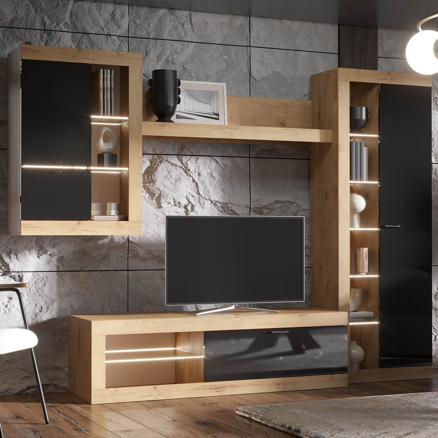 Создать комфортную и красивую гостиную — это искусство, которое требует внимания к каждой детали. Сочетание Дуба Вотан с чёрным глянцем делает мебель одновременно строгой и лаконичной, при этом стильной и уютной, а что самое важное – черный цвет универсальный и классический. Он подходит к любому стилю и сочетается со всей цветовой палитрой.