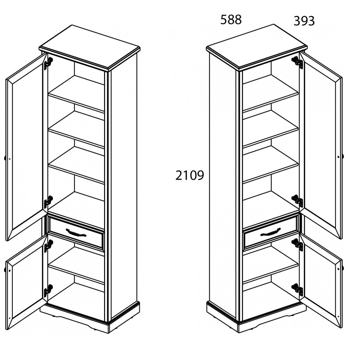 2. Шкаф TOSCANA NEW 2D1S 588x393x2109 мм