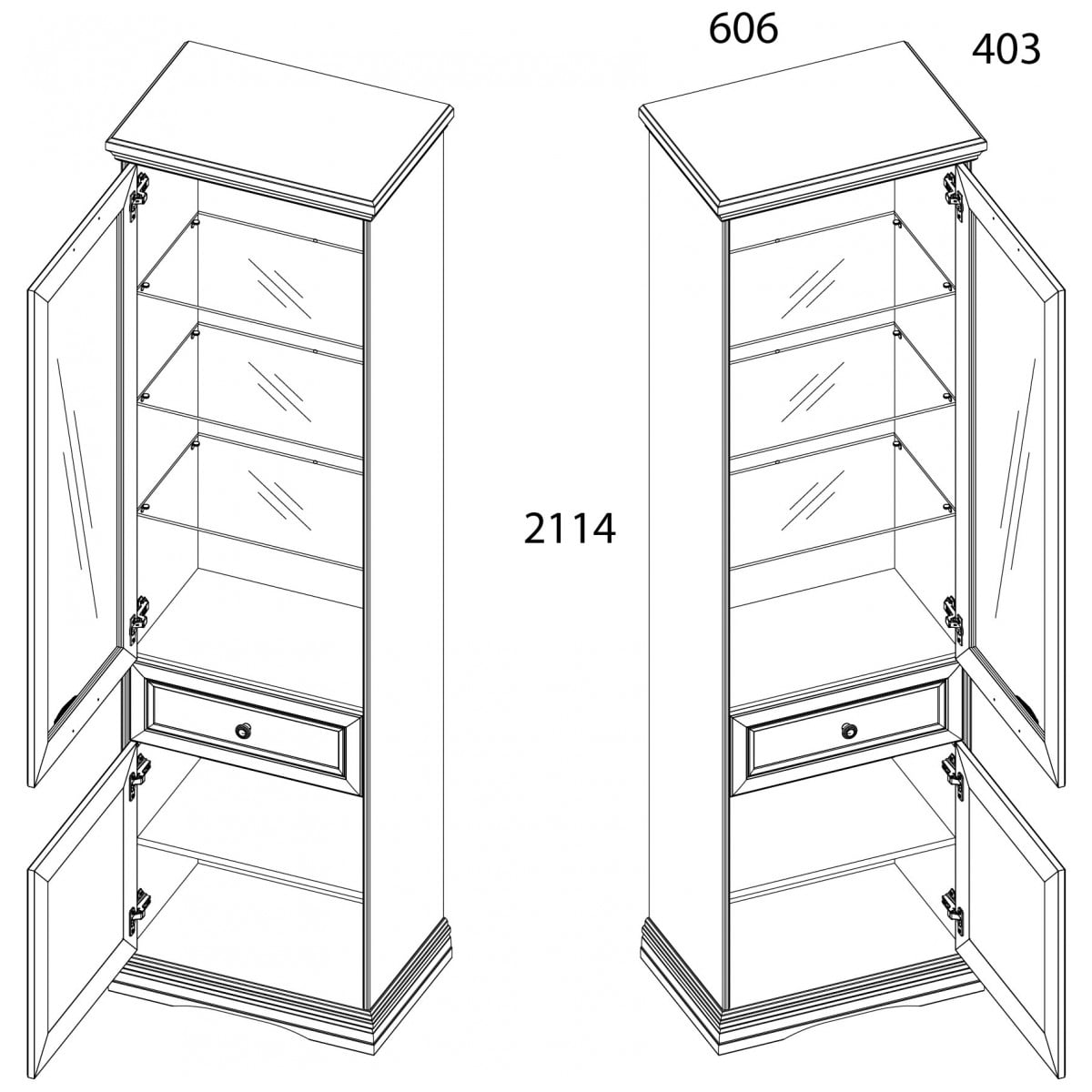 3. Шкаф с витриной VALENCIA 1V1D1S 606x403x2114 мм