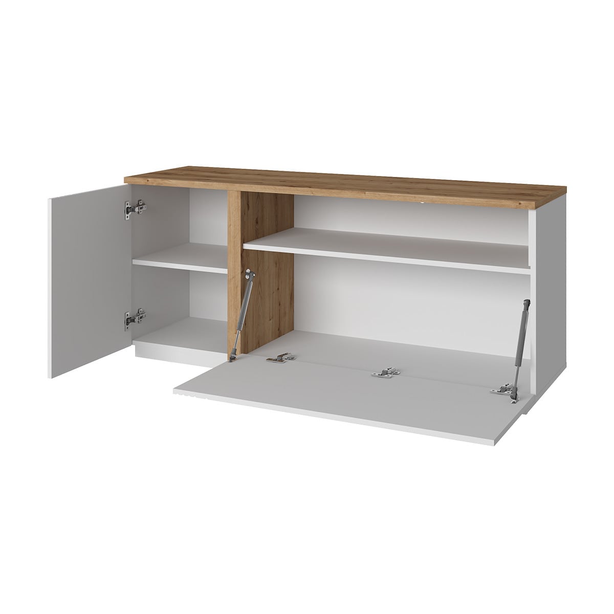 Тумба MATEO RTV 2DN Белый/Дуб наварра