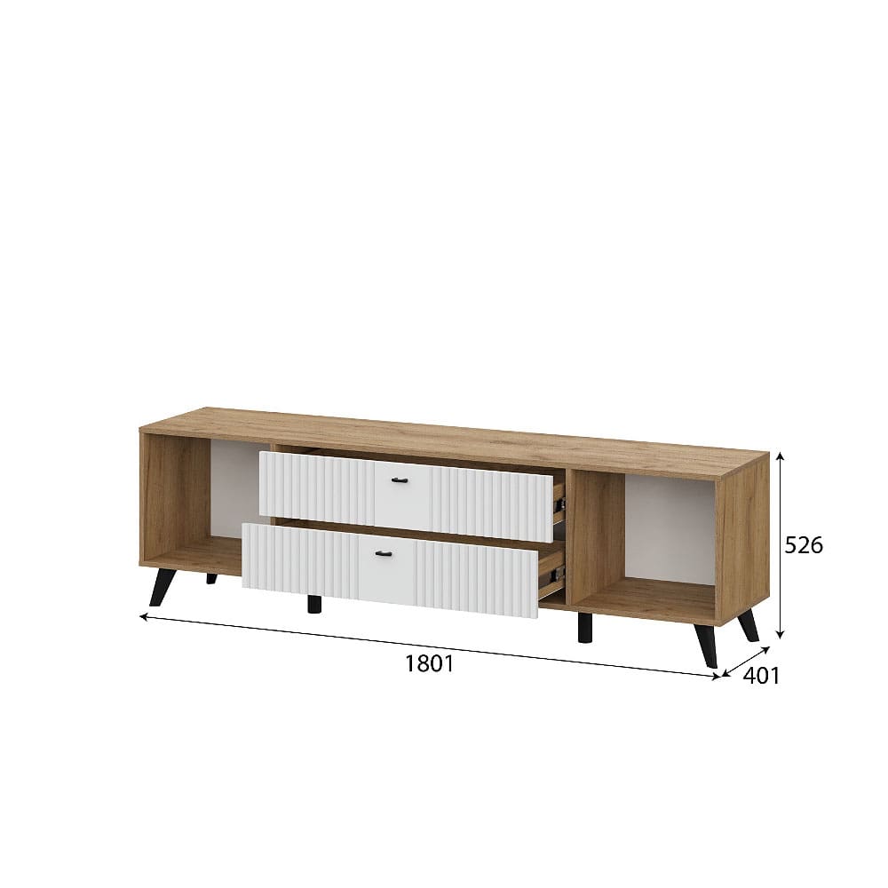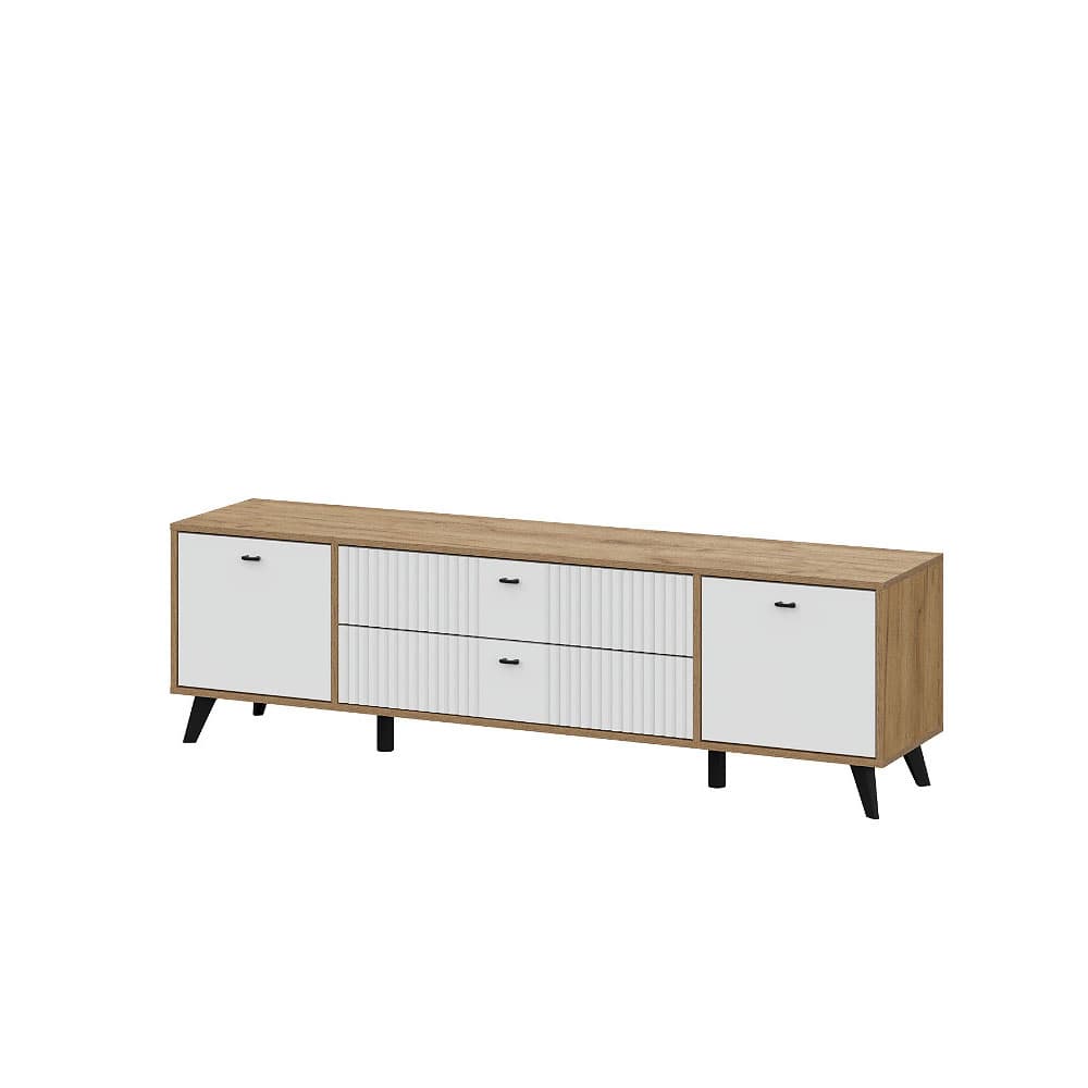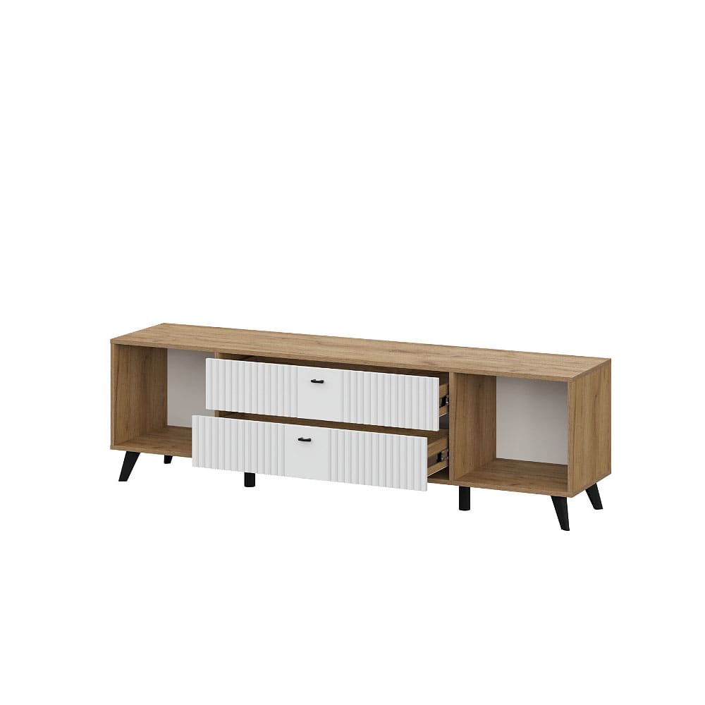 Тумба для телевидеоаппаратуры Милан с ящиками Дуб Золотой/Белый матовый