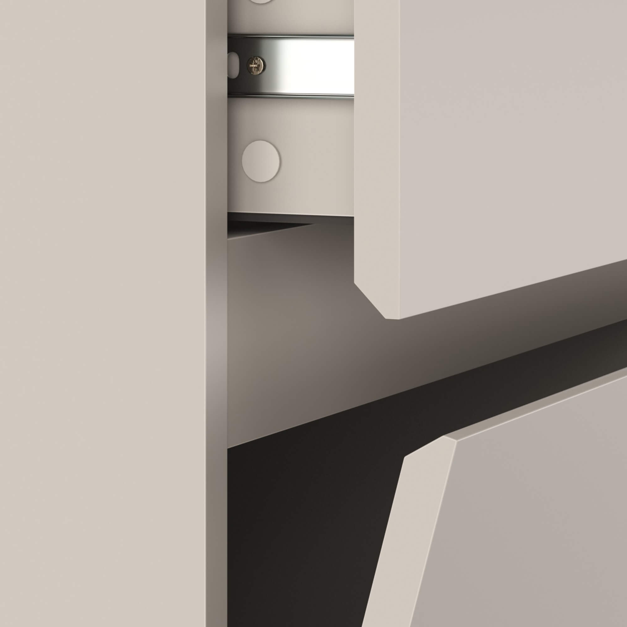 Открывание: интегрированная в фасад ручка(без лицевой фурнитуры).