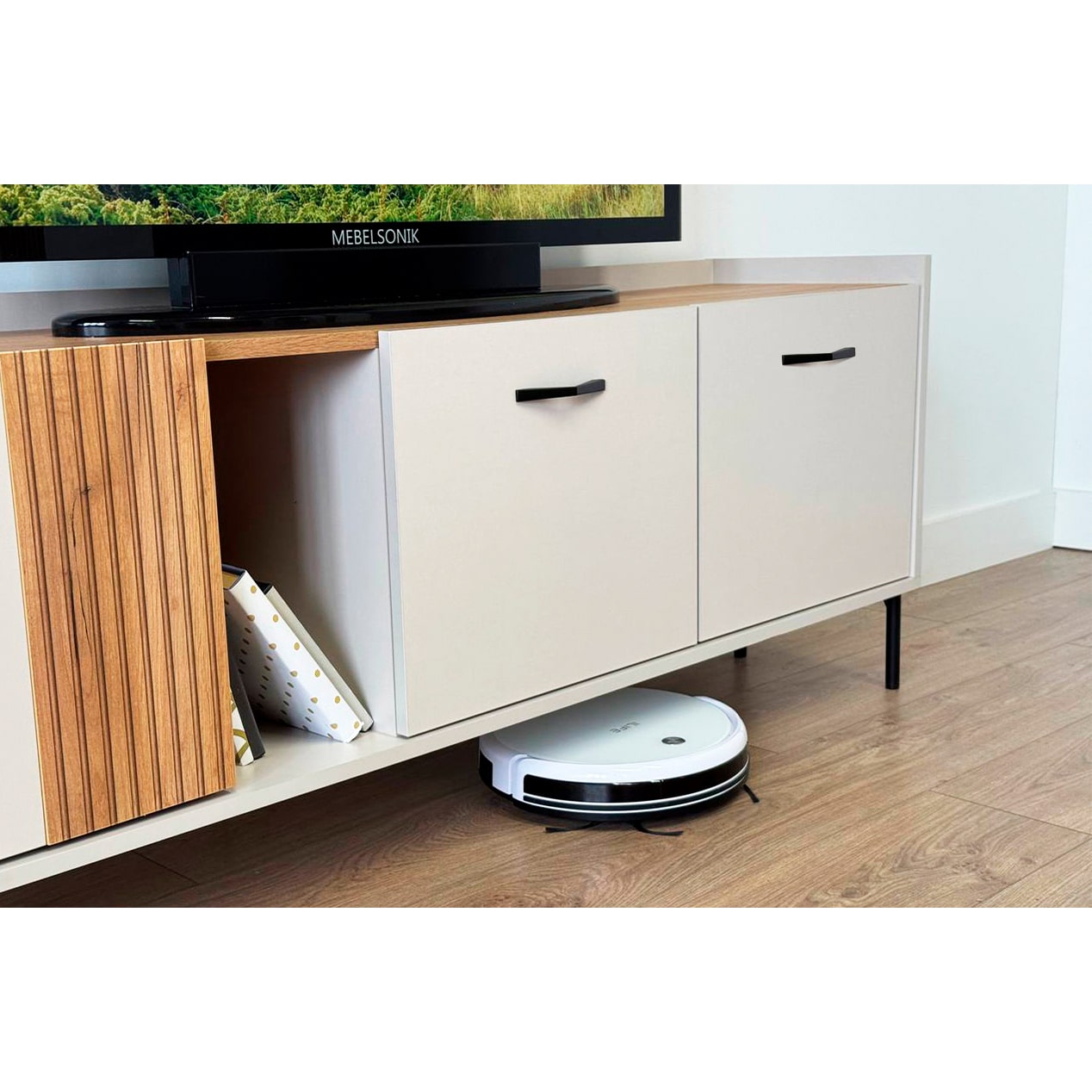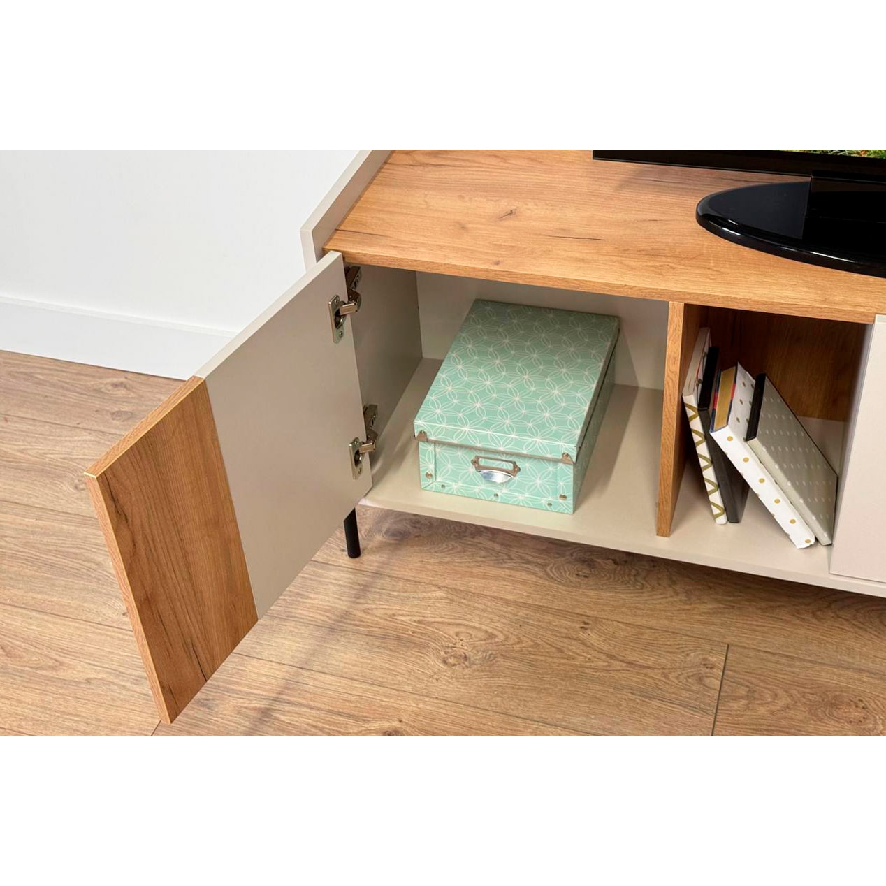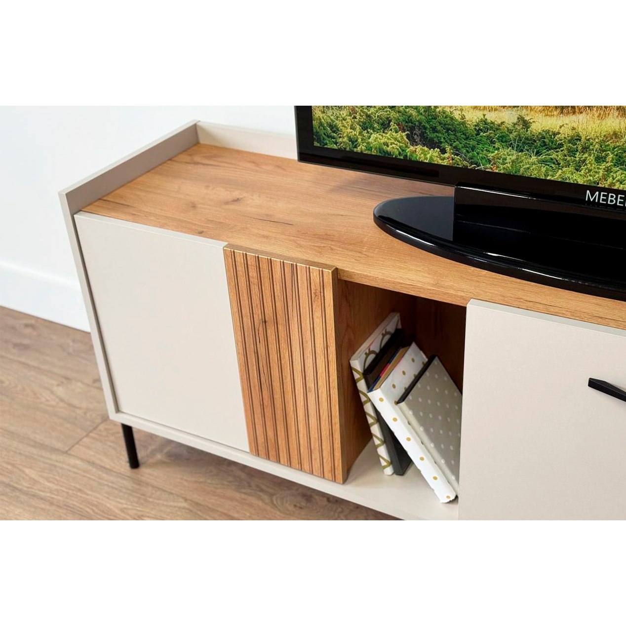 Стильные металлические ручки придают тумбе современный и модный вид. Открытая ниша обеспечивает легкий доступ к вещам, которые вы используете часто, или может служить пространством для размещения медиа-устройств.