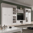 Тумба по ТВ имеет две ниши, закрытые дверцами и центральная открытая с одной съёмной полкой.