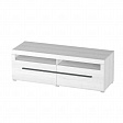 Корпус тумбы изготовлен из ЛДСП, фасады с закругленными линиями - из МДФ. Стиль изделия подчеркивают черные металлические ручки. Тумба имеет открытое отделение для хранения и два объемных выдвижных ящика на шариковых направляющих.
