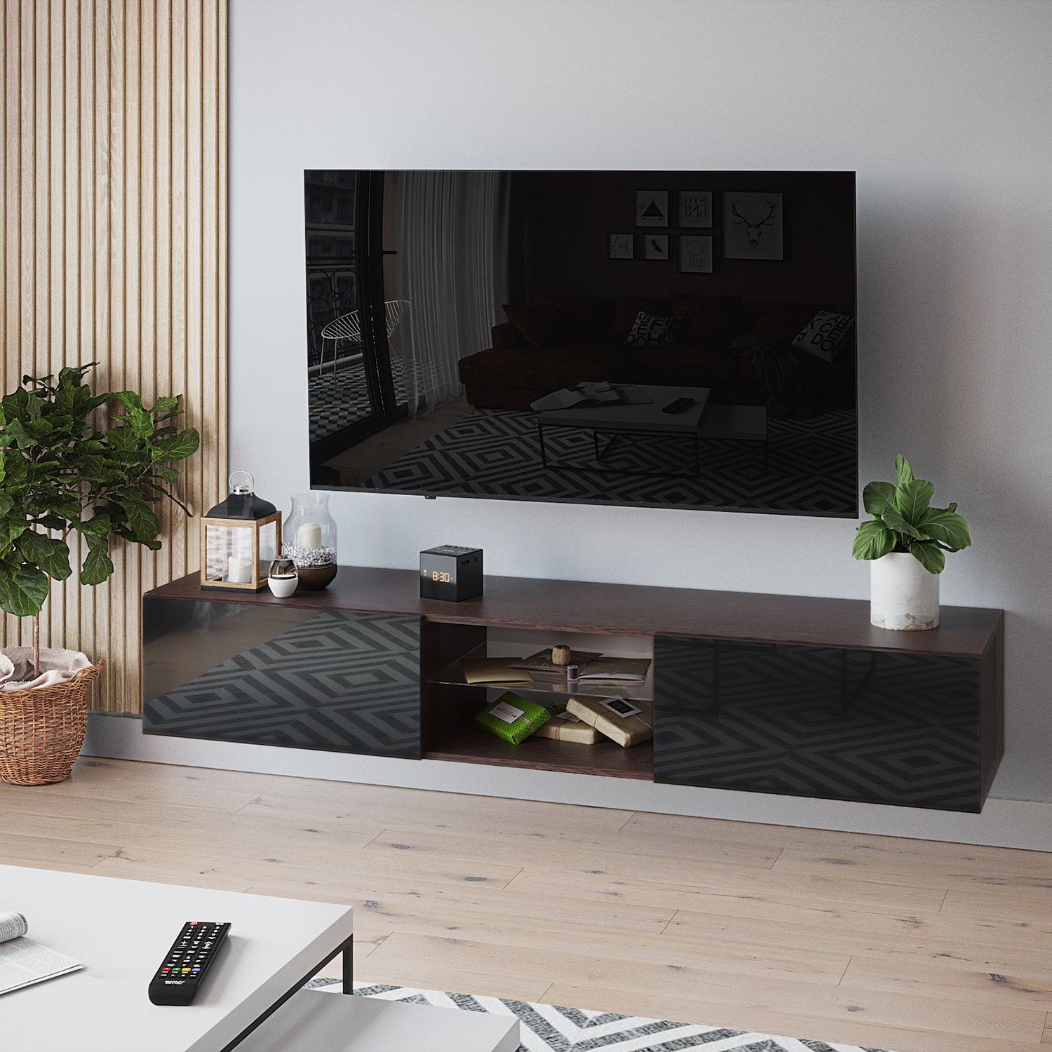 Тумба ТВ подвесная VNK-2 Венге/Черный лакобель