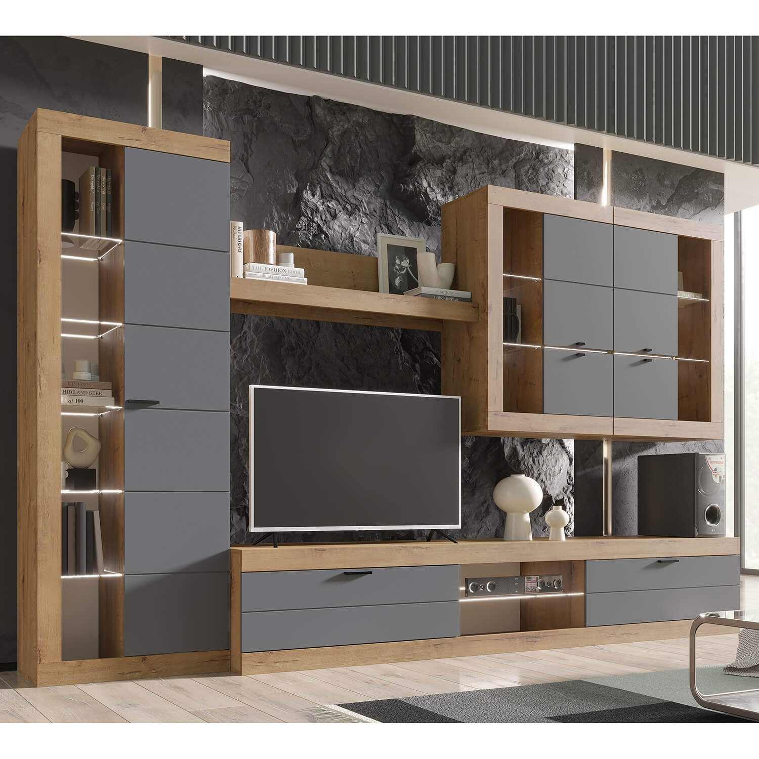 Графит – это классический выбор для сочетания с Дубом Вотан. Он создает яркий контраст, который подчеркивает глубину и насыщенность цвета.