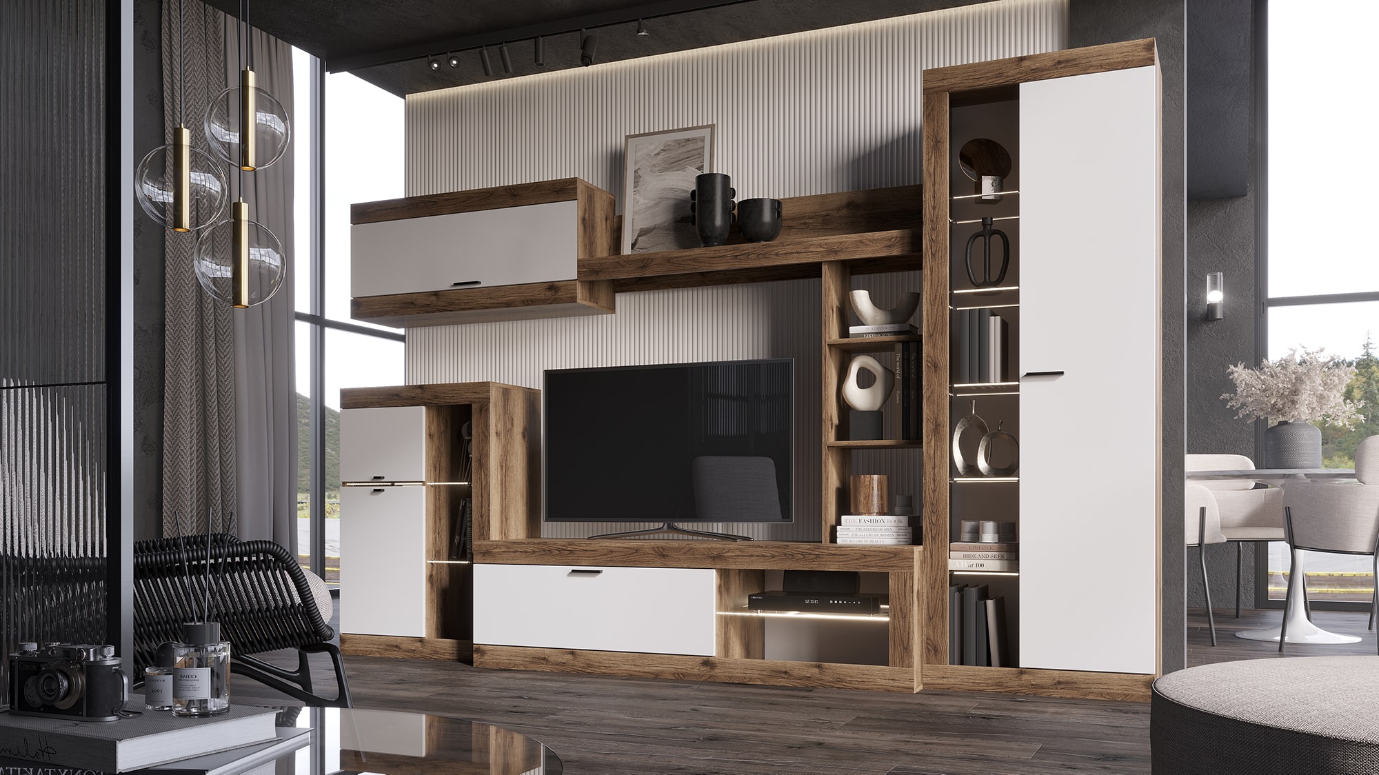 Гостиная Прага гармонично впишется в любой интерьер, а возможность подсветки создаст атмосферу комфорта.