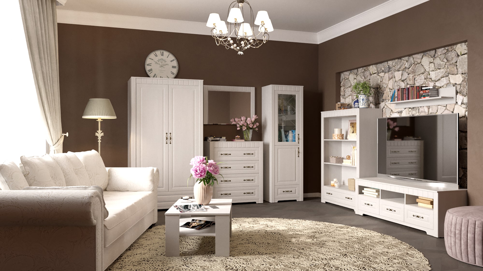 Тумба для гостиной из серии “Прованс” - это прекрасное решение для тех, кто хочет создать уютную и теплую атмосферу в своем доме. Она выполнена в стиле прованс, который характеризуется использованием натуральных материалов и светлых оттенков.
