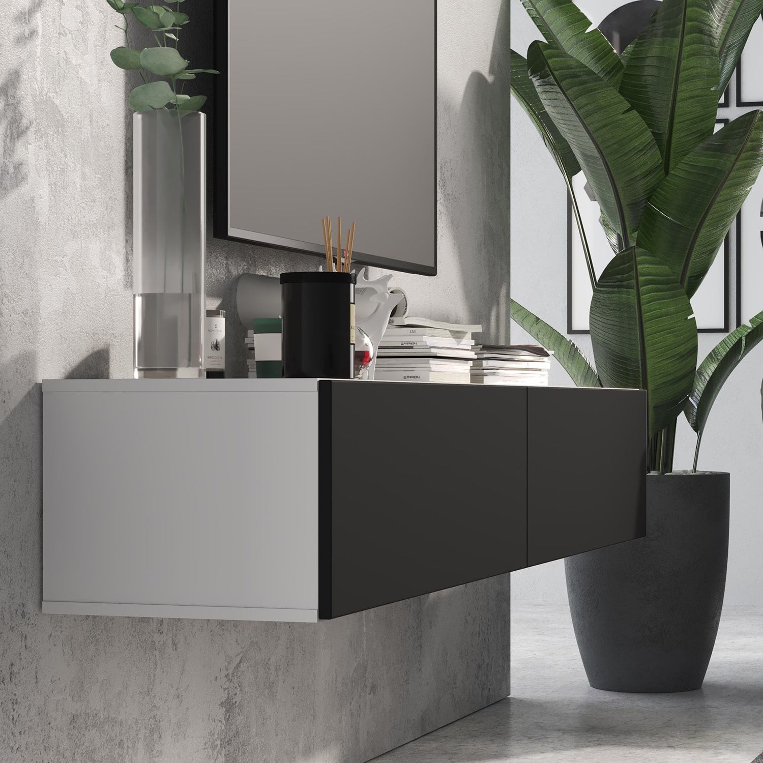 Тумба ТВ SOMERO 1800 Белый/Черный матовый