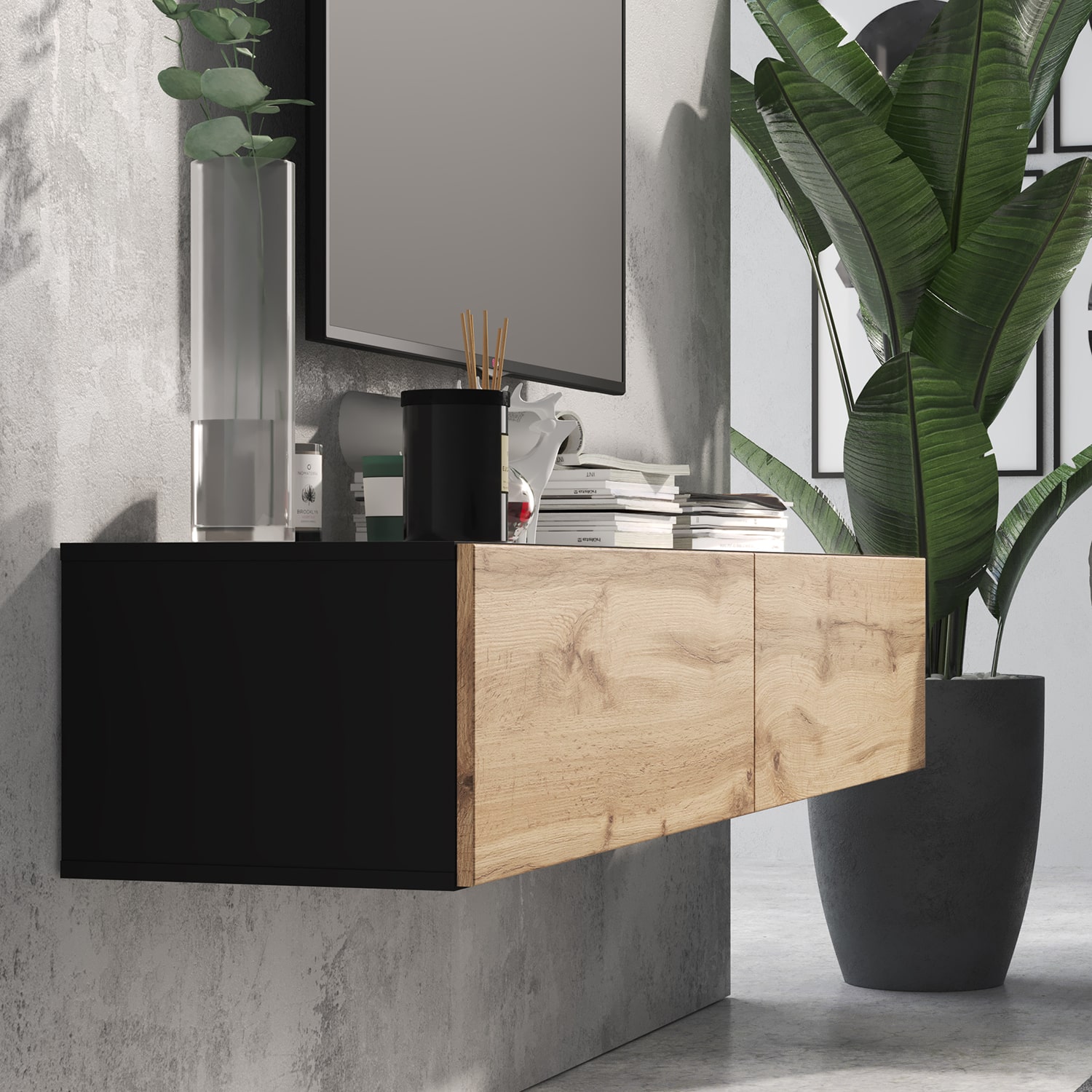 Тумба ТВ SOMERO 1800 Черный/Дуб Вотан