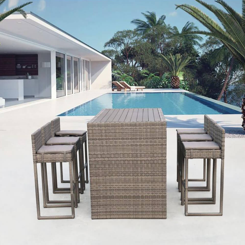 Высокий барный стул с подушкой в комплекте подойдет под любую барную стойку. Высококачественная лоза из полиротанга коричневого цвета стойкая к любым атмосферным явлениям. Крепкий стальной каркас с полимерным антивандальным покрытием и отличным качеством сварки. Изделие сплетено вручную нашими мастерами под жестким контролем качества на каждом этапе производства. Лоза максимально приближена по рельефу и текстуре к естественному материалу. Идеально подходит для использования на улице и внутри помещения в любую погоду. Не боится воды, солнца и минусовой температуры.