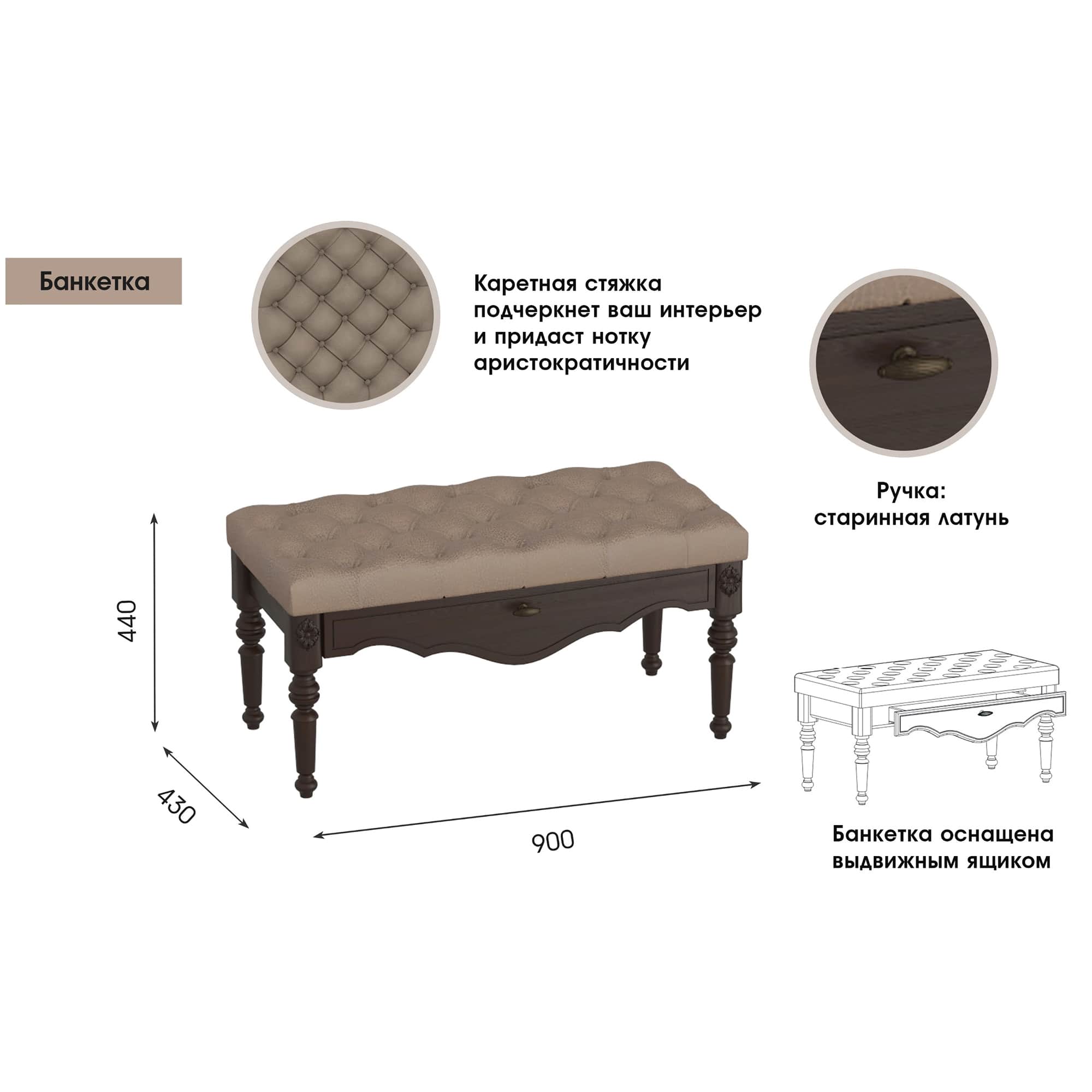 Банкетка “Лилль” выполнена в классическом стиле, что придает ей изысканный и элегантный вид.