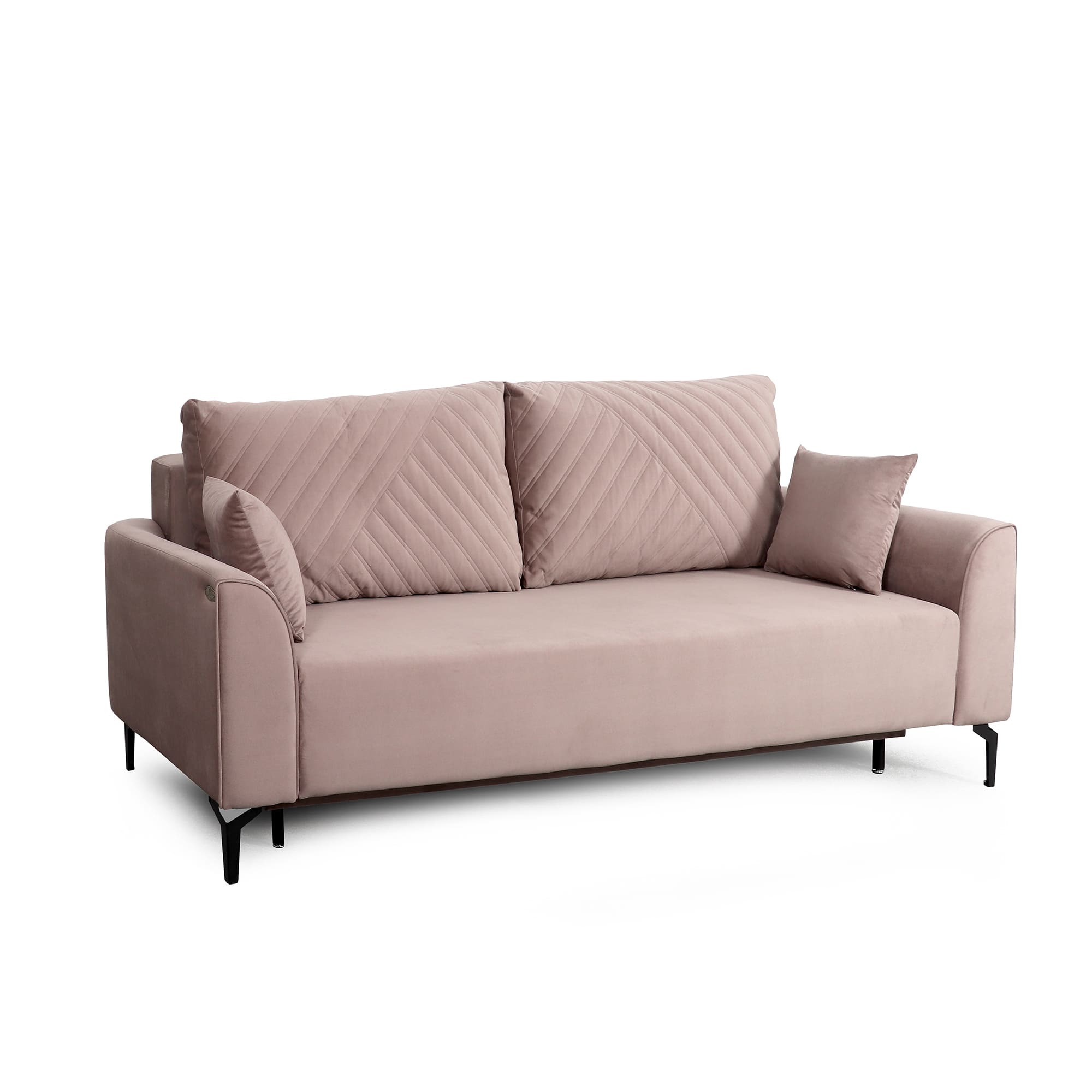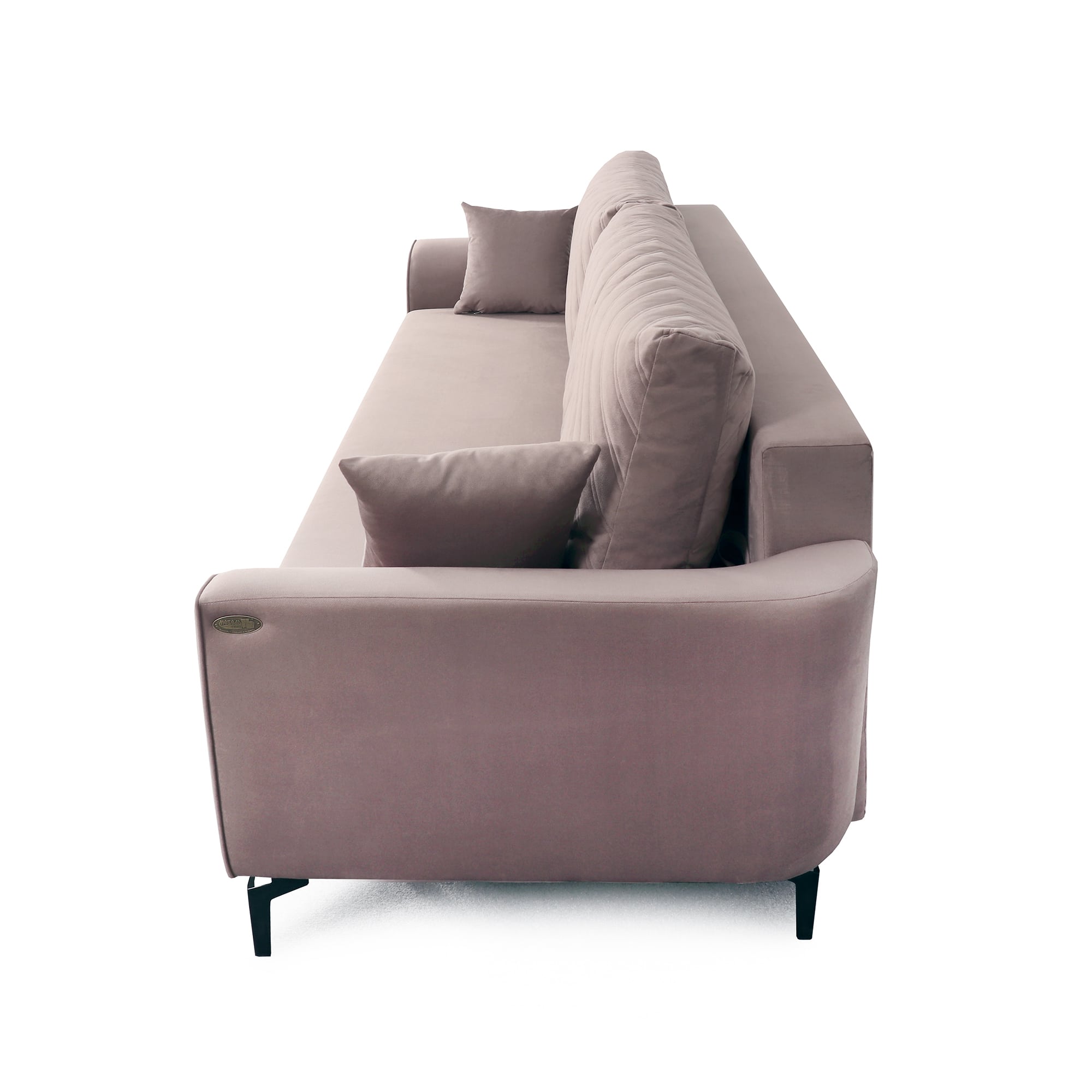 Плавные линии подлокотников позволяют удобно расположиться во время отдыха. Диван стоит на высоких металлических опорах, что позволяет использовать робот-пылесос в процессе уборки. Удобный и долговечный механизм трансформации "Тик-так" обеспечивает легкое раскладывание дивана.