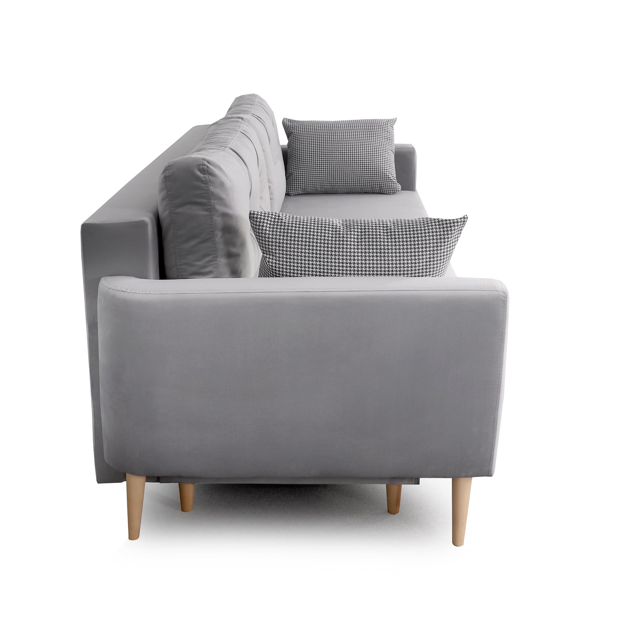 Диван-кровать "Калгари 2" выполнен в самом любимом и популярном во всем мире скандинавском стиле. Функционально практичный, элегантный, и в то же время уютный диван из высококачественного велюра на ножках из массива березы будет одинаково хорошо смотреться как на большом метраже и в малогабаритной квартире.