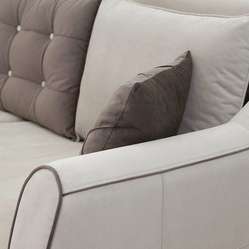 Декор: декоративный кант, пуговицы, отстрочка, утяжки на подушках и подлокотниках.