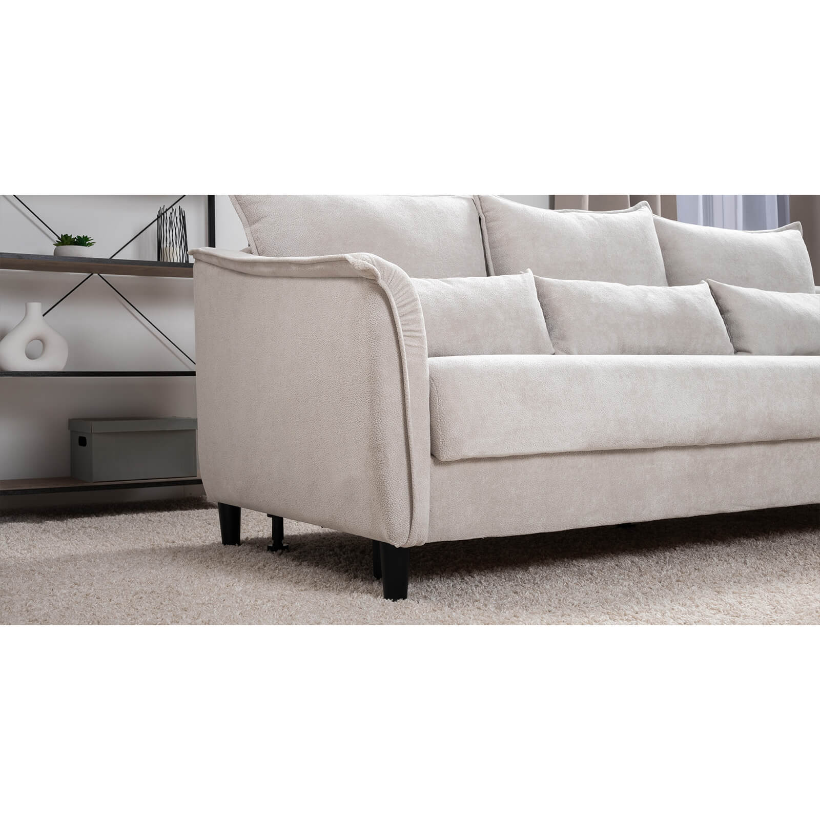 Изогнутые подлокотники в форме лепестков придают коллекции изысканный и элегантный вид, а дополнительные декоративные подушки обеспечат поддержку поясницы и помогут уютно устроиться на диване. В наполнении дивана используется высокоэластичная пена, которая адаптируется к форме вашего тела и гарантирует максимальный комфорт во время отдыха.