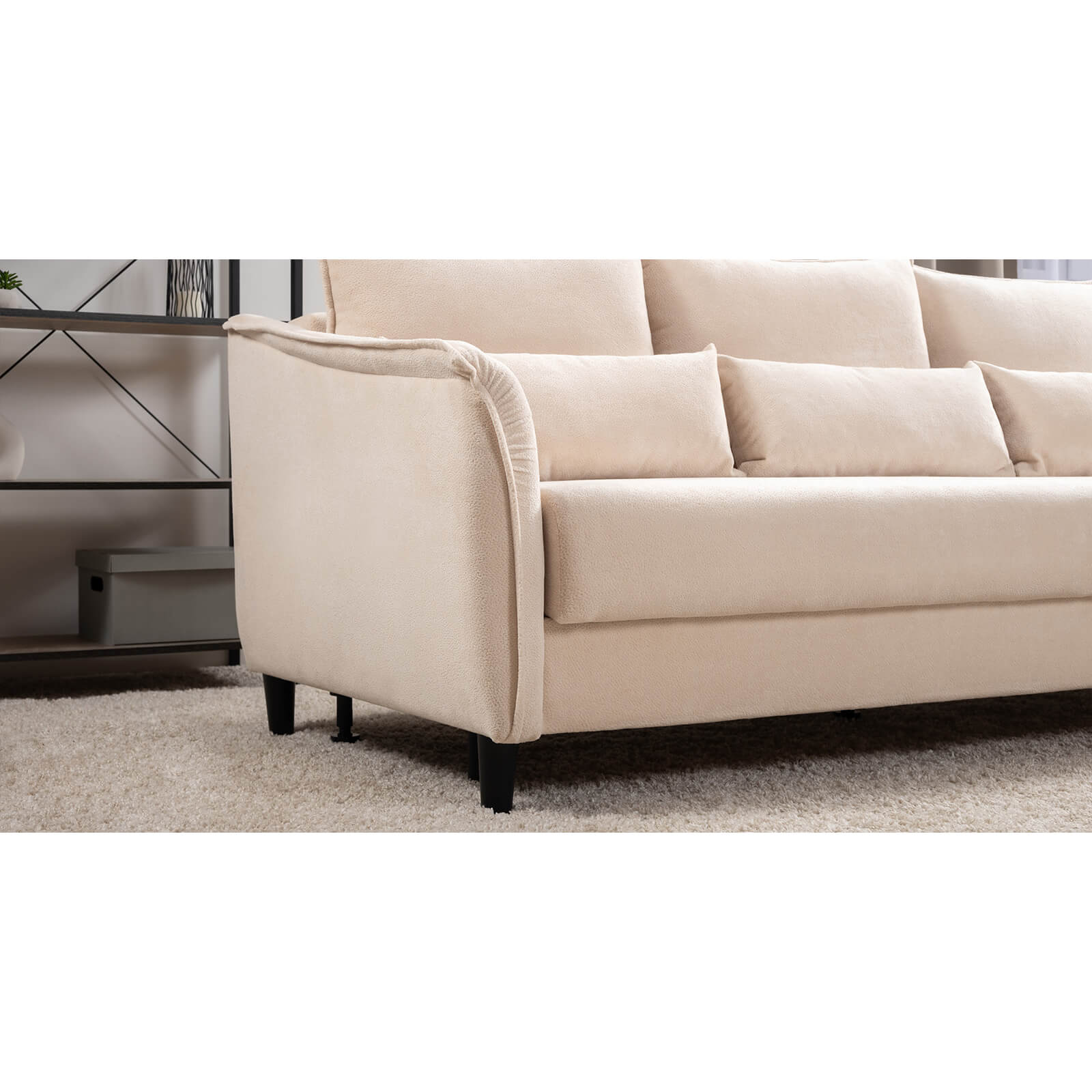 Изогнутые подлокотники в форме лепестков придают коллекции изысканный и элегантный вид, а дополнительные декоративные подушки обеспечат поддержку поясницы и помогут уютно устроиться на диване. В наполнении дивана используется высокоэластичная пена, которая адаптируется к форме вашего тела и гарантирует максимальный комфорт во время отдыха.