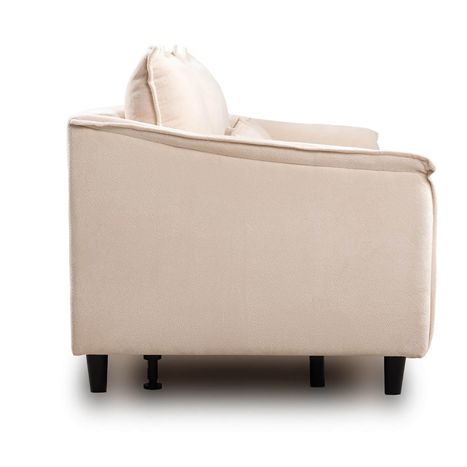 Декор: Спинка с тремя приспинными подушками. Две подушки трапецивидной формы, центральная квадратной формы на молнии, по трем сторонам которых проложена отделочная строчка на 1,2 см. По контуру боковин проложен декоративный кант на 1,2 см из основной ткани. Кант проходит по центру передней части боковины, а по внутренней верхней части сборка.