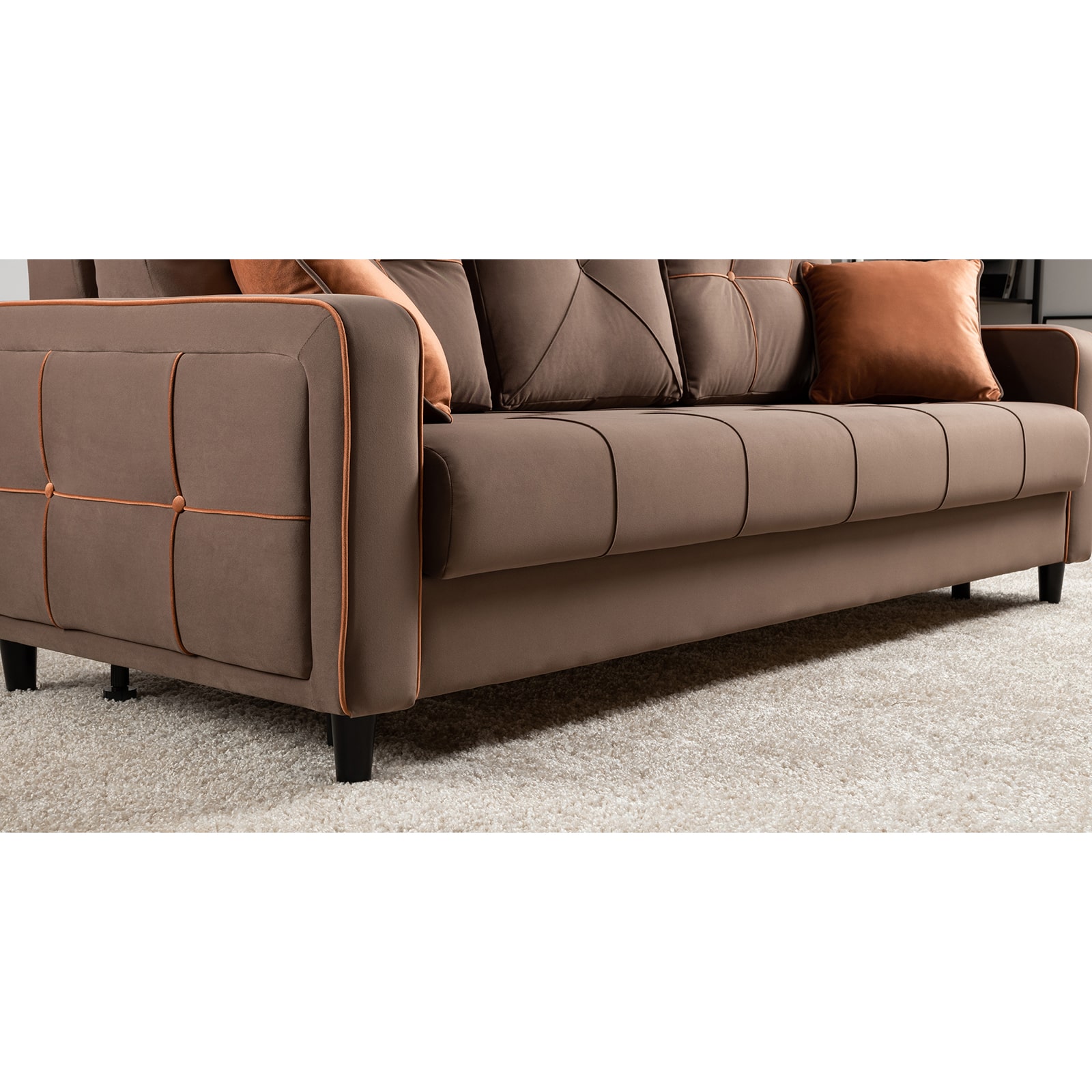 Модный диван "Черри Н" порадуют поклонников современного стиля. Контрастные канты, пуговицы и декоративные подушки делают этот диван ярким акцентом интерьера.