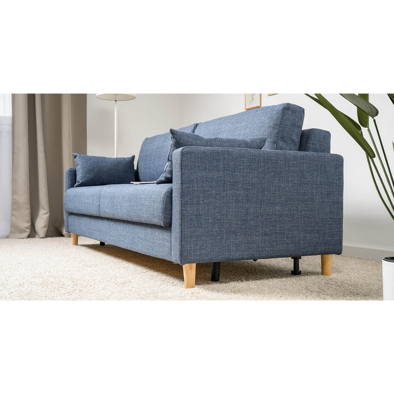 Комфорт: глубокая мягкая посадка дивана, удобные декоративные подушки, приятная на ощупь рогожка.