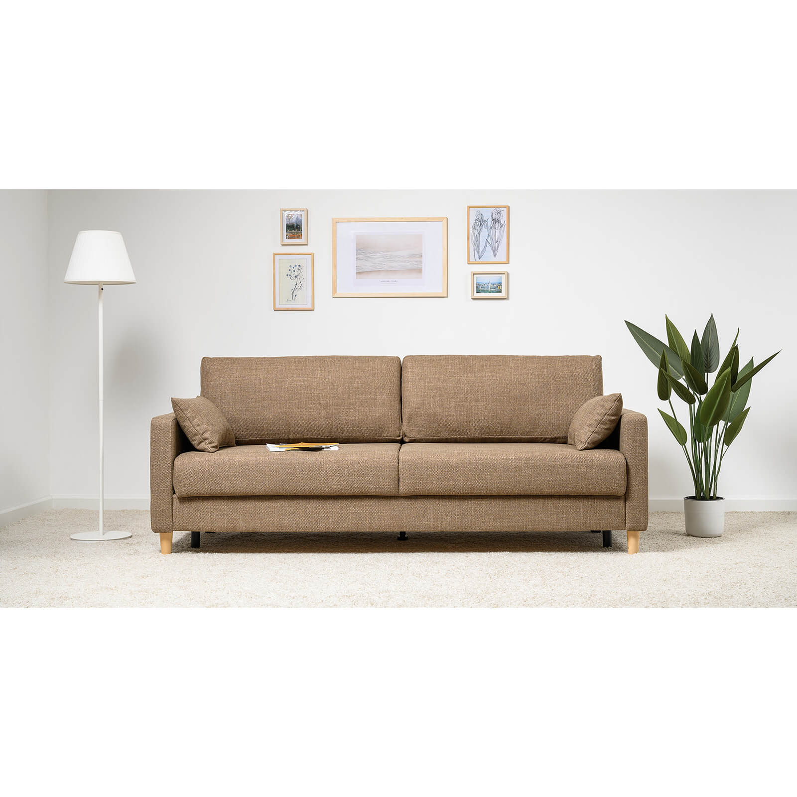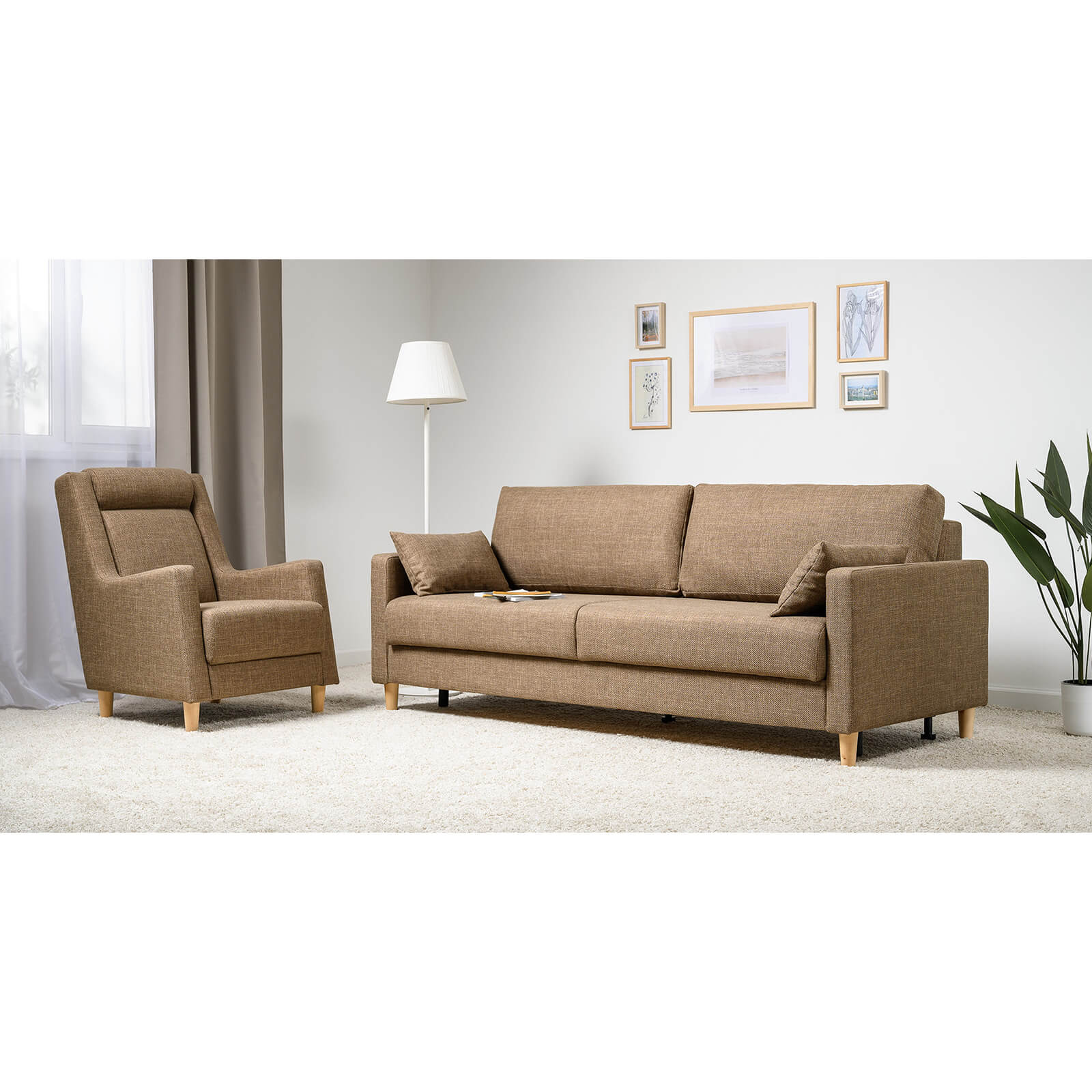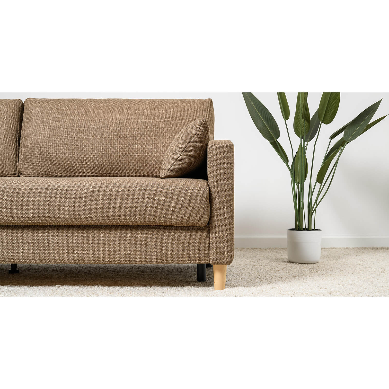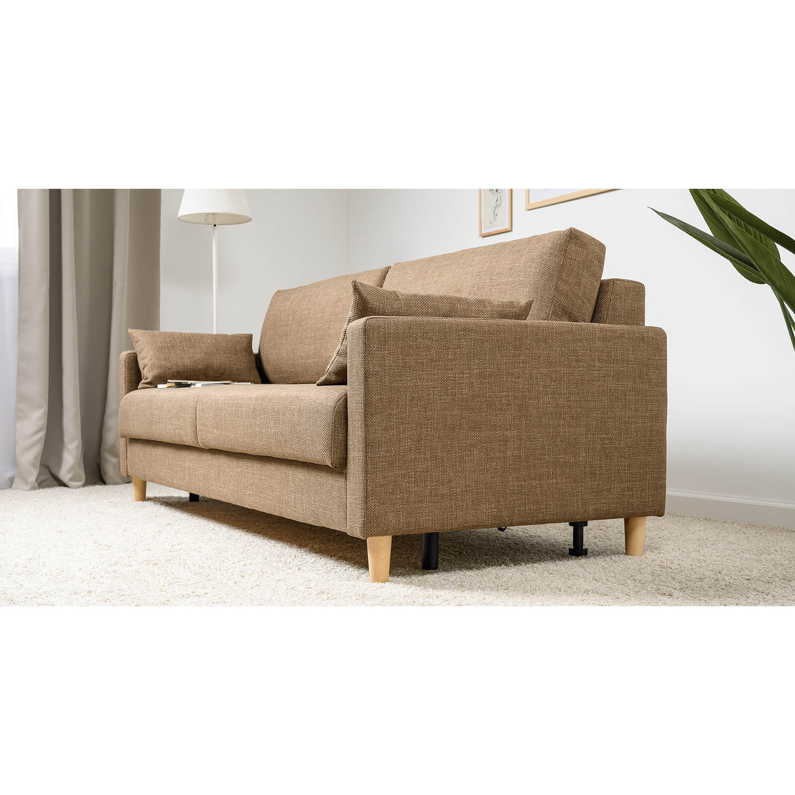 Комфорт: глубокая мягкая посадка дивана, удобные декоративные подушки, приятная на ощупь рогожка.