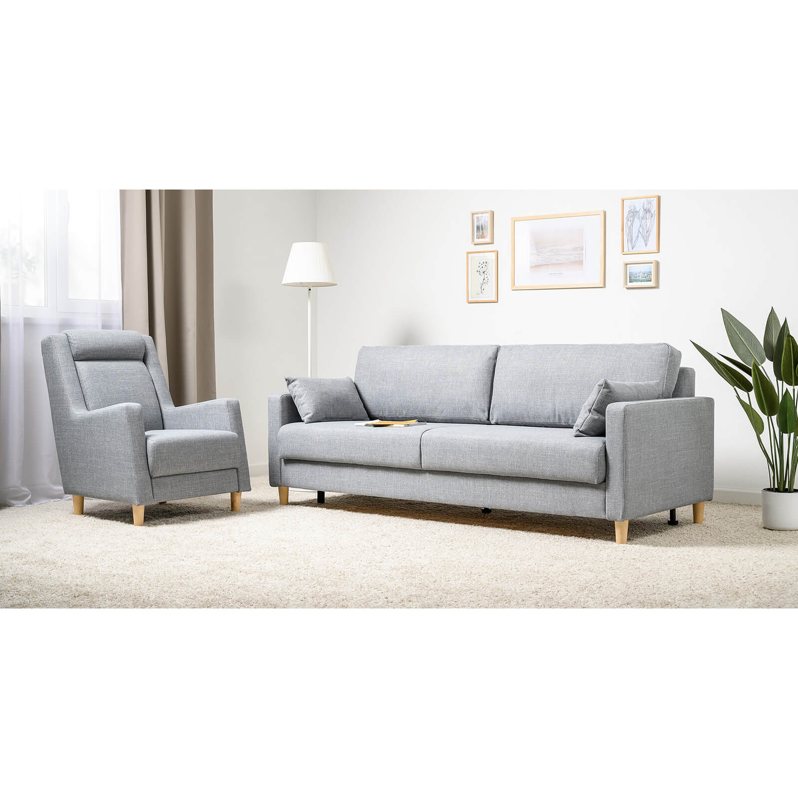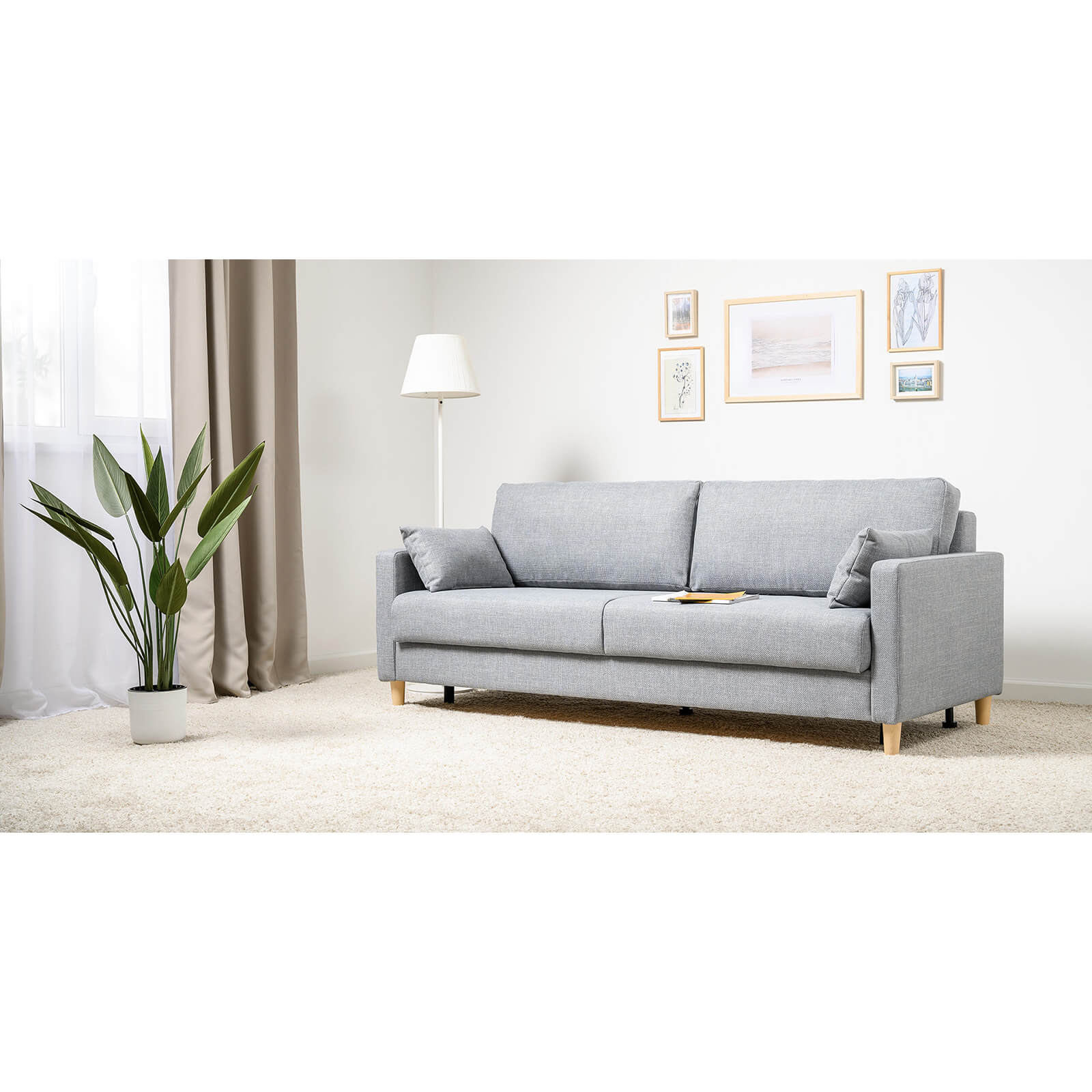 Комфорт: глубокая мягкая посадка дивана, удобные декоративные подушки, приятная на ощупь рогожка.