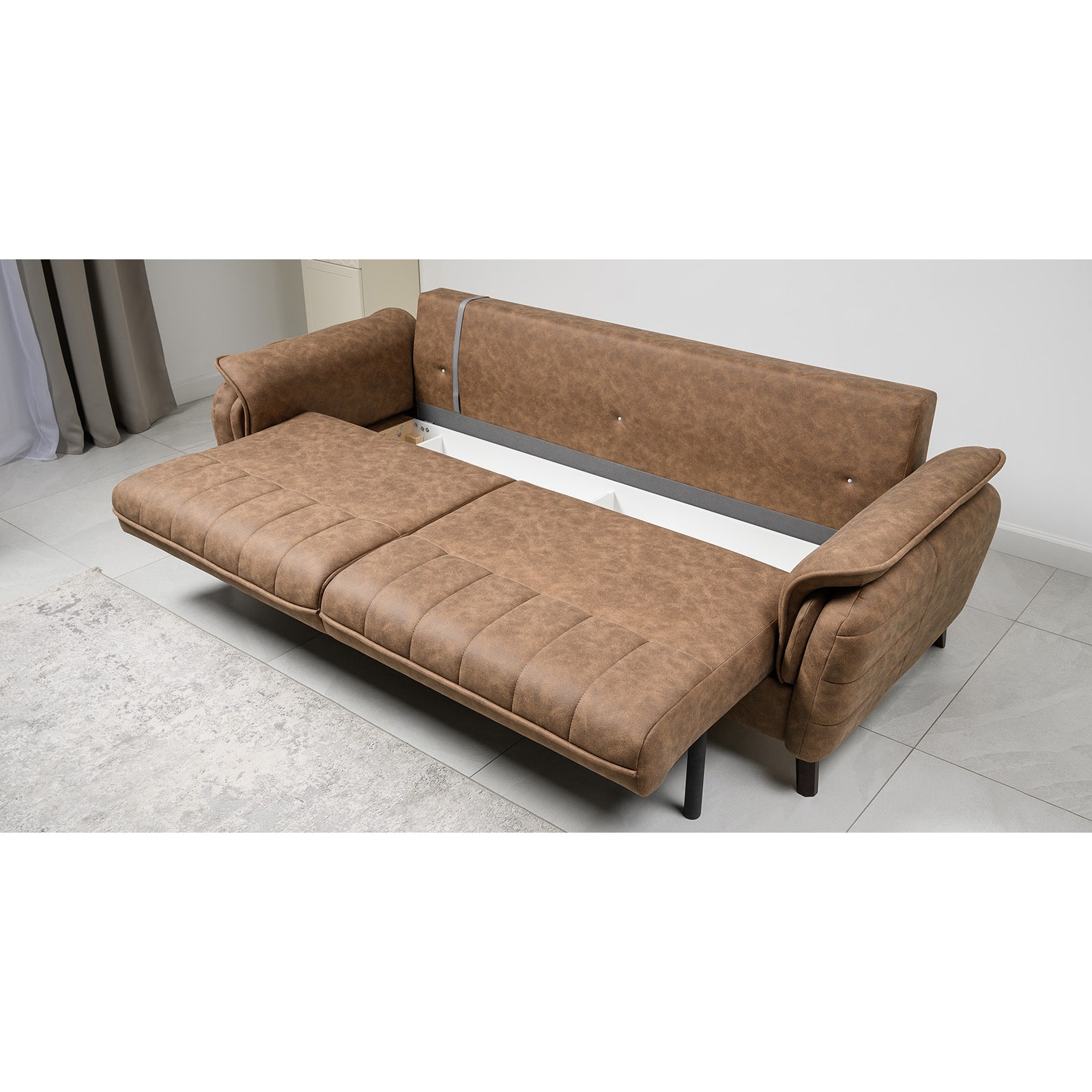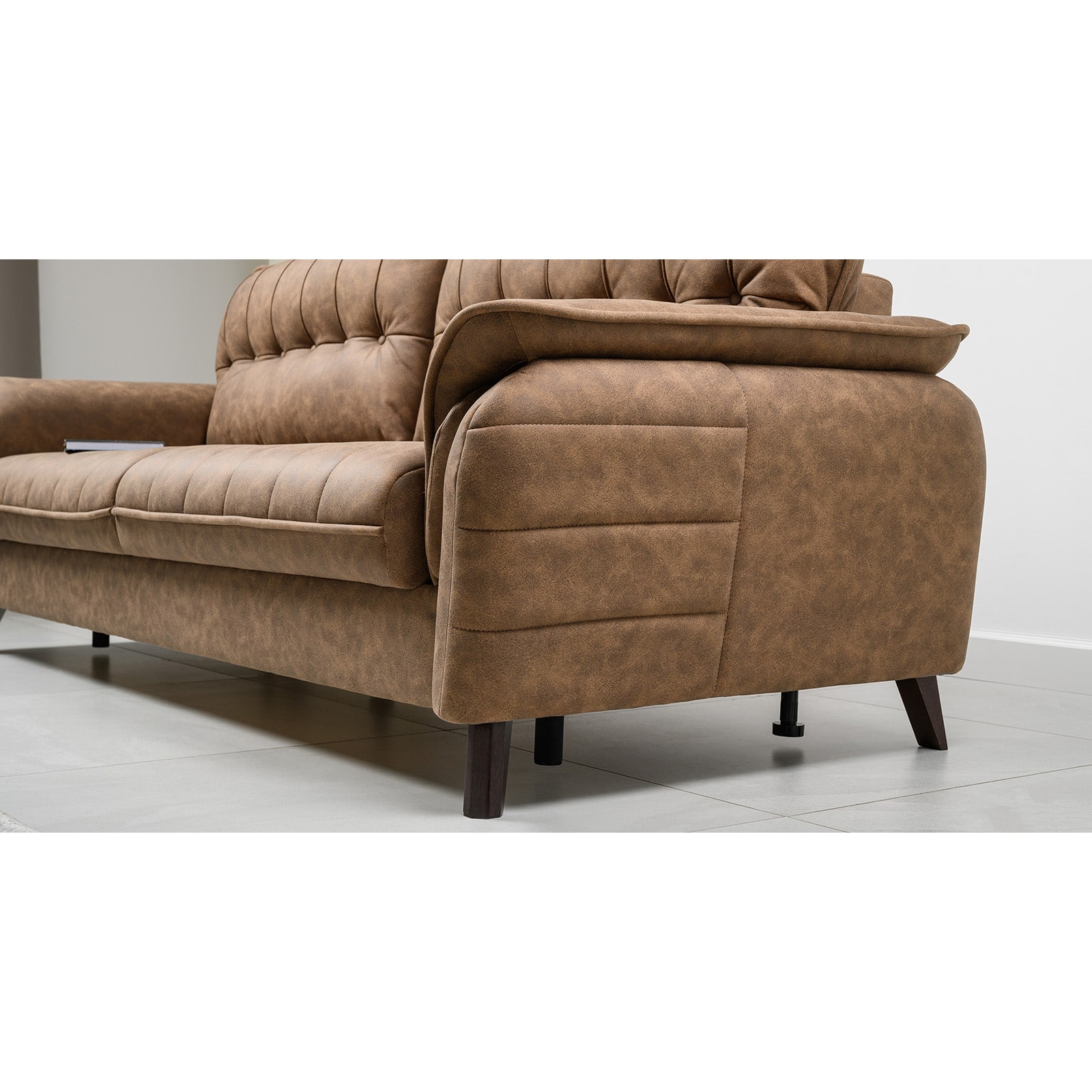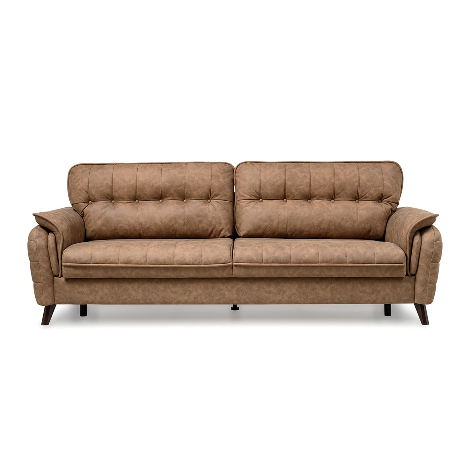 Обновленный дизайн дивана Дорис привлекает внимание роскошной фактурой искусственной замши с изысканным тиснением. Деревянные опоры подчёркивают восточный колорит, добавляя изделию изящности.