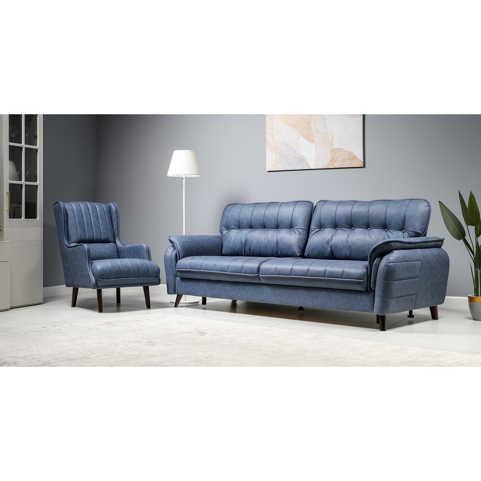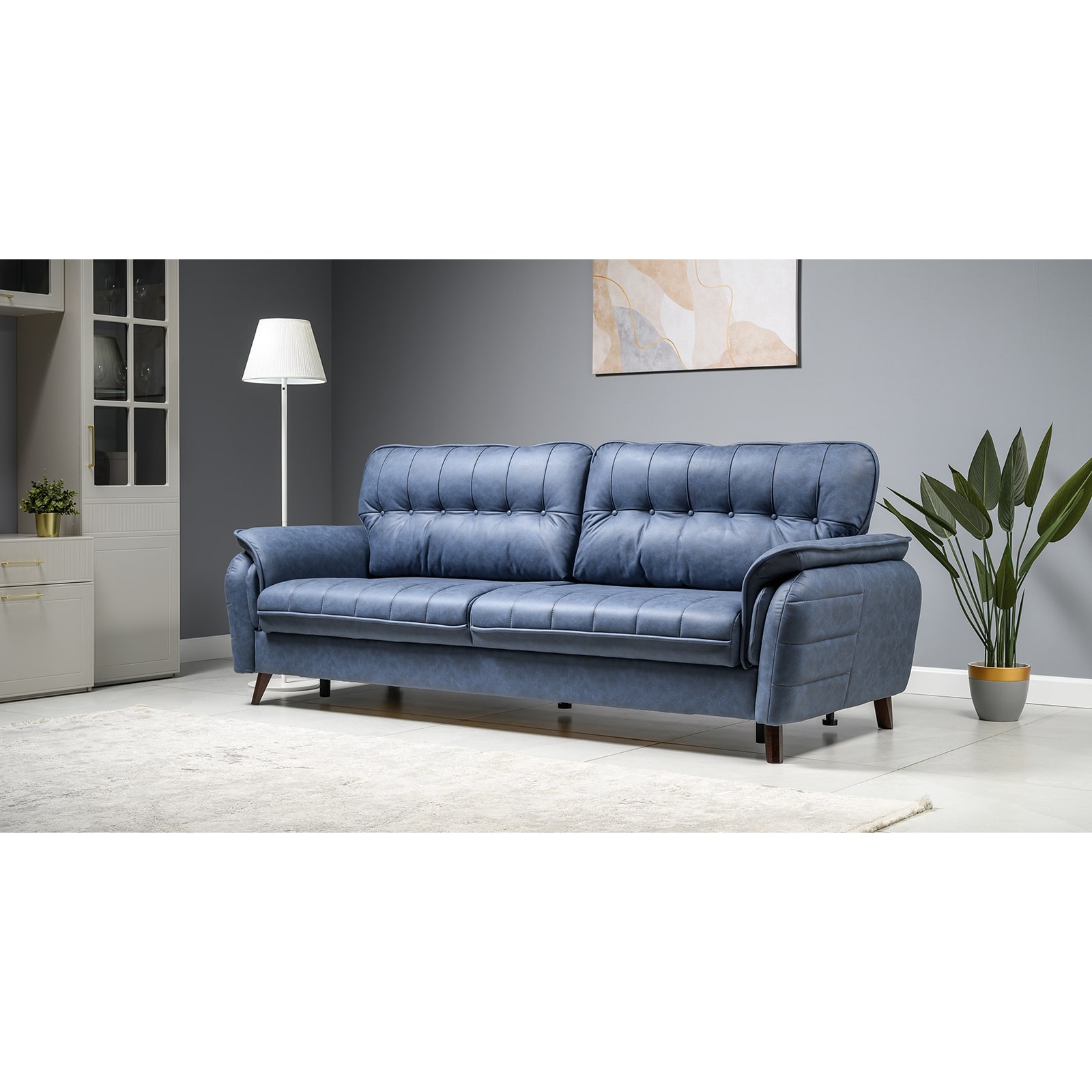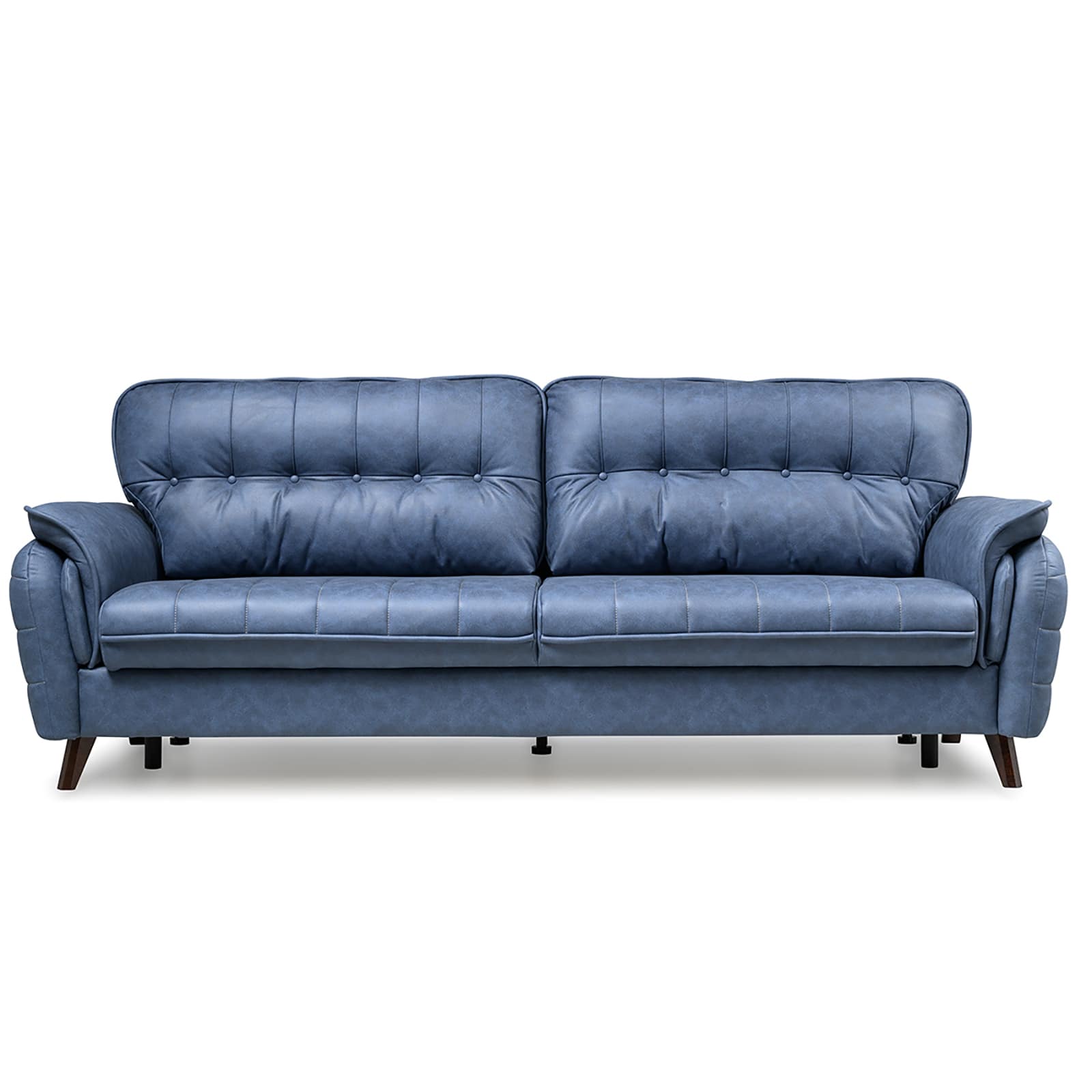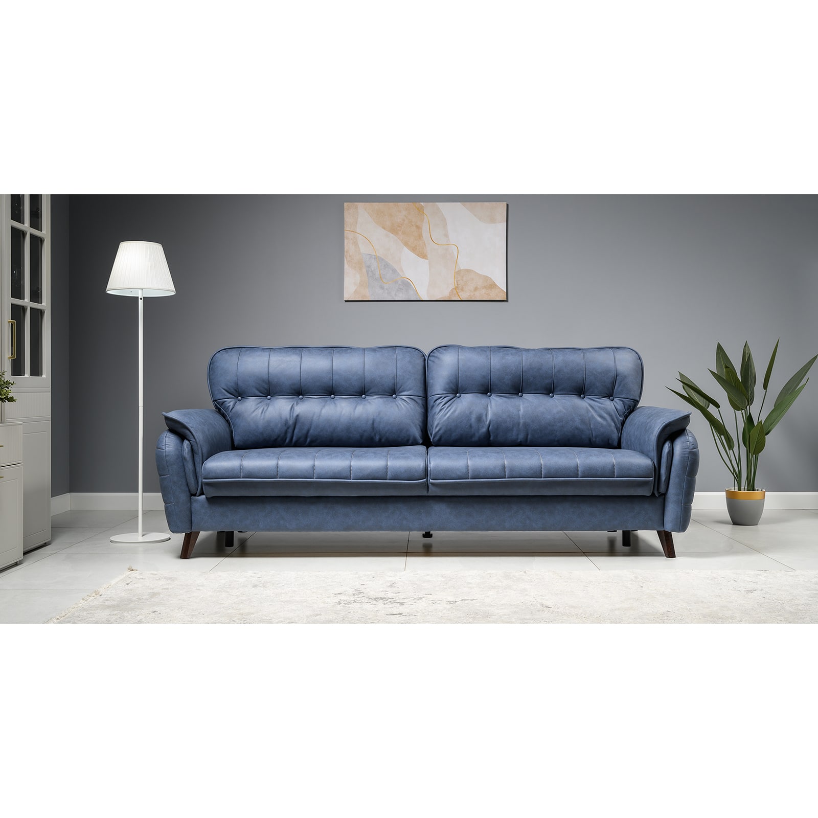 Декоративные канты на подушках дивана, подлокотниках и сиденье. Стежка на передней части сиденья и внешней части подлокотника. Защипы на верхней части подушки. Втяжки с пуговицами на приспинных подушках.