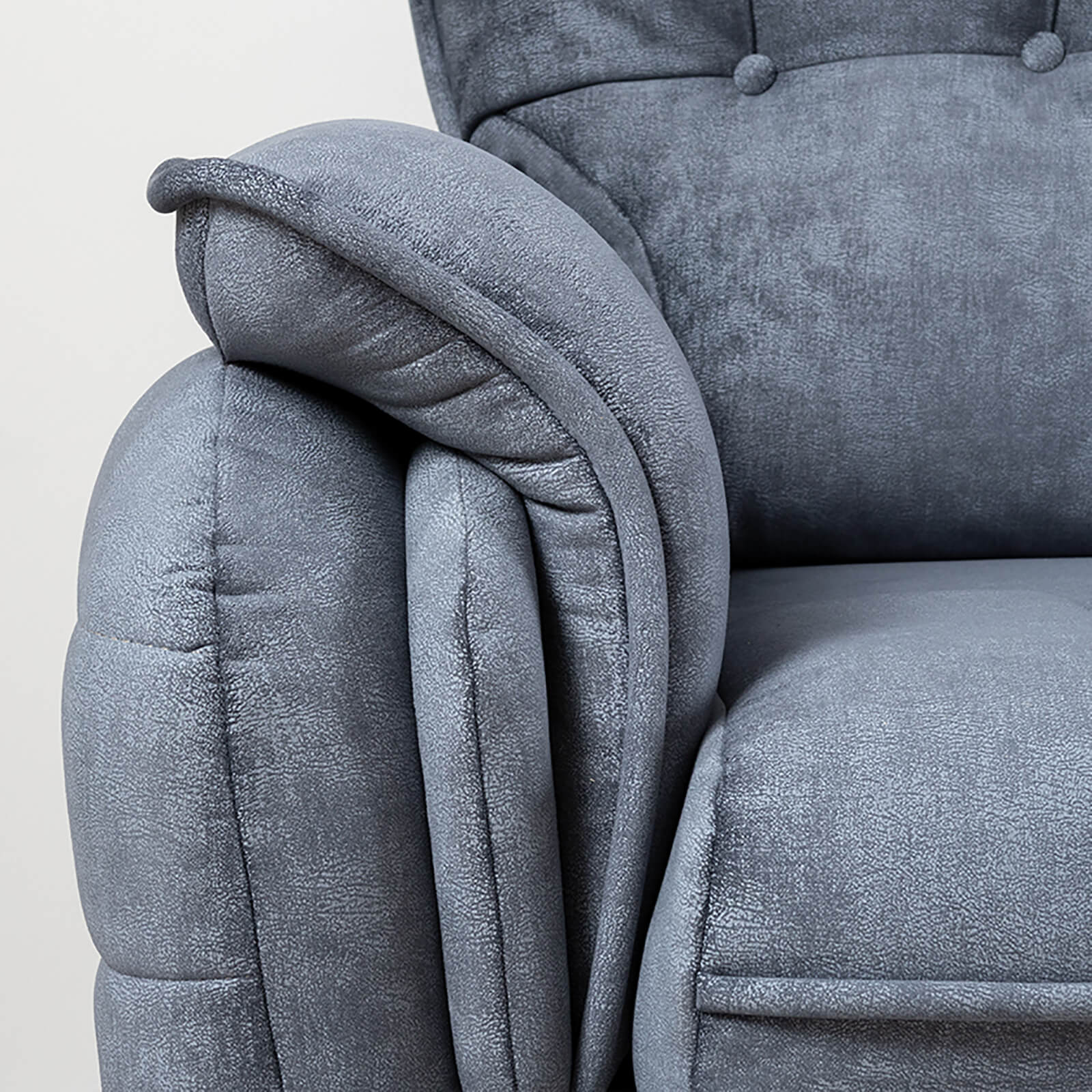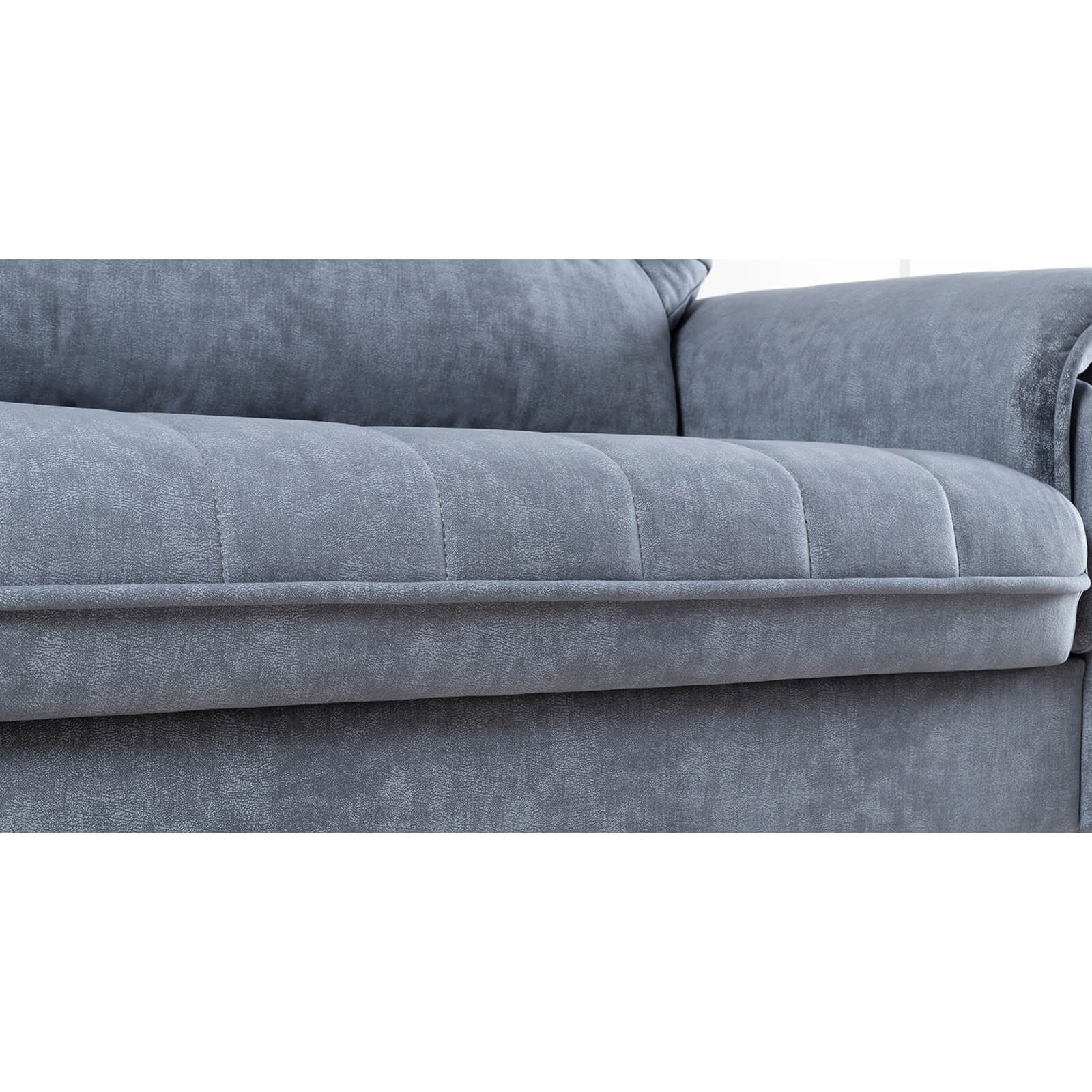 Декоративные канты на подушках дивана, подлокотниках и сиденье. Стежка на передней части сиденья и внешней части подлокотника. Защипы на верхней части подушки. Втяжки с пуговицами на приспинных подушках.