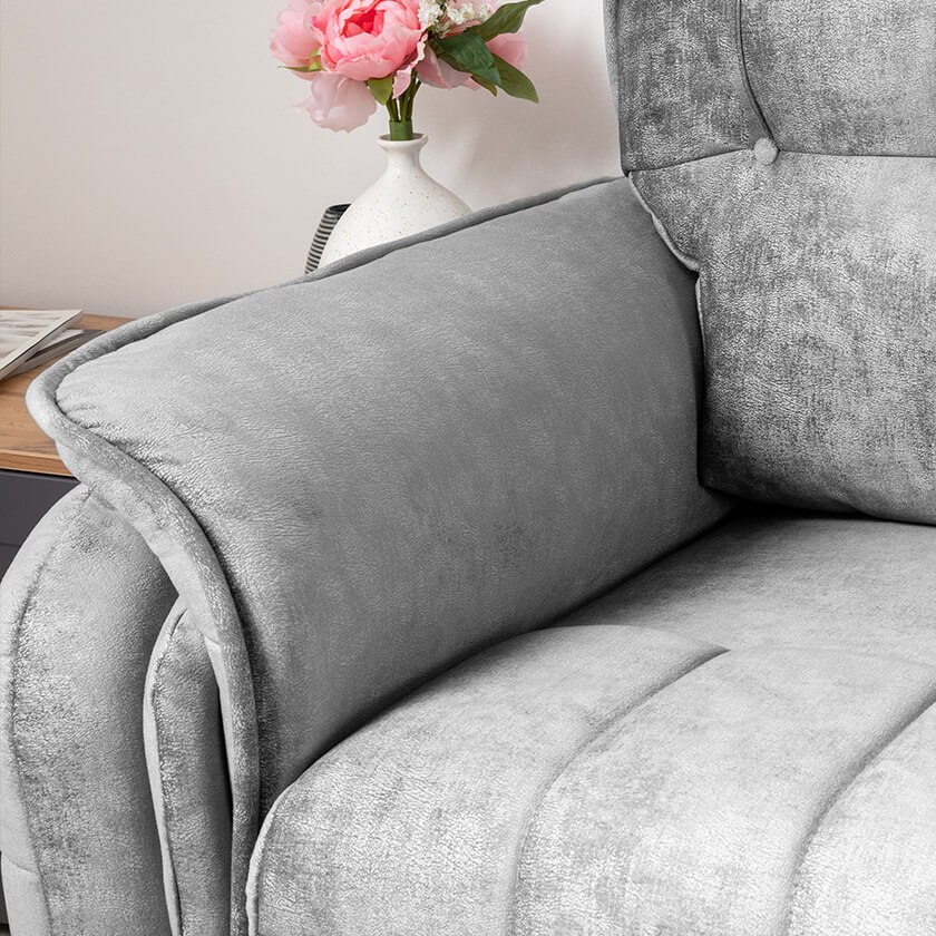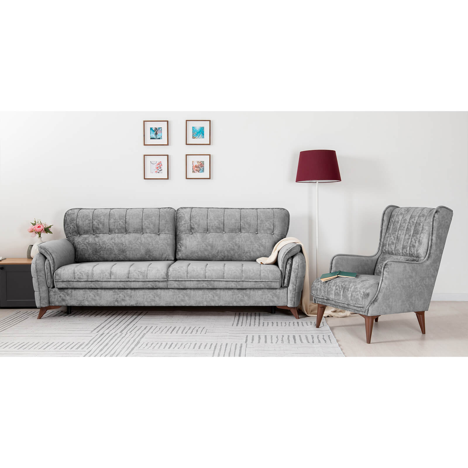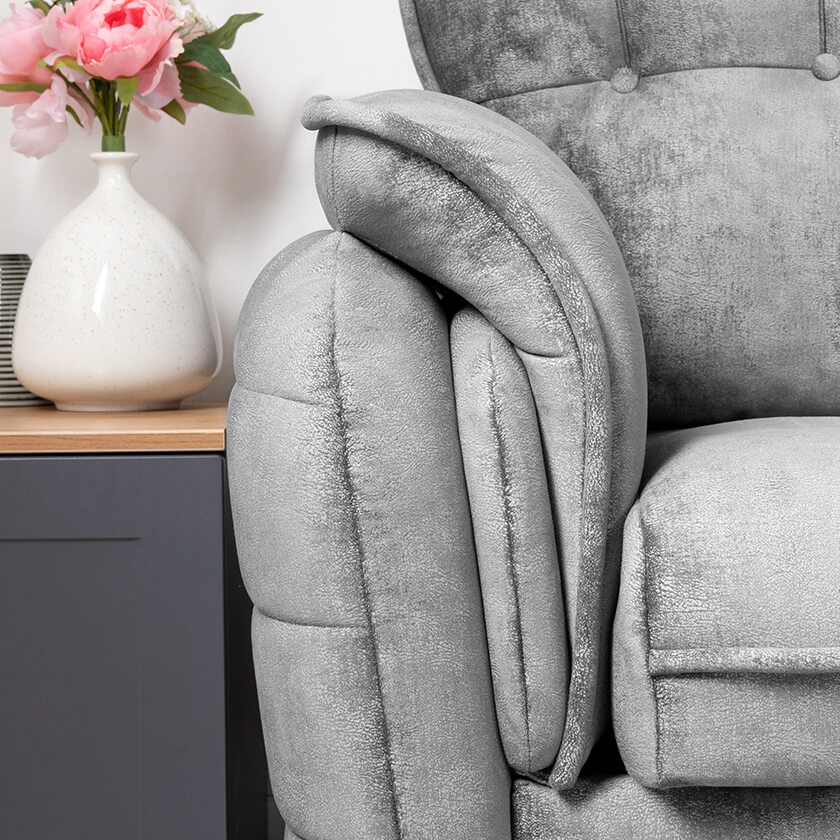 Декоративные канты на подушках дивана, подлокотниках и сиденье. Стежка на передней части сиденья и внешней части подлокотника. Защипы на верхней части подушки. Втяжки с пуговицами на приспинных подушках.