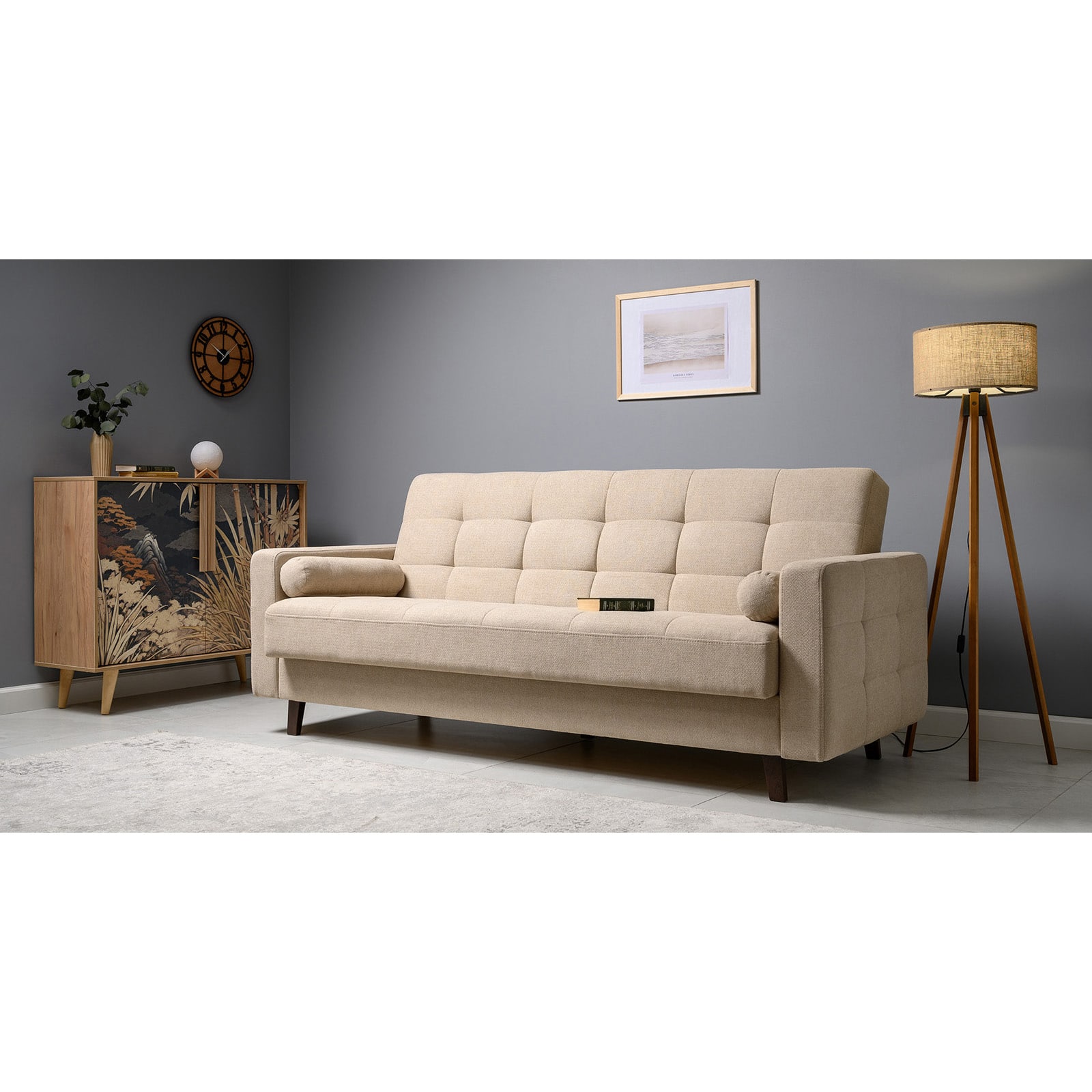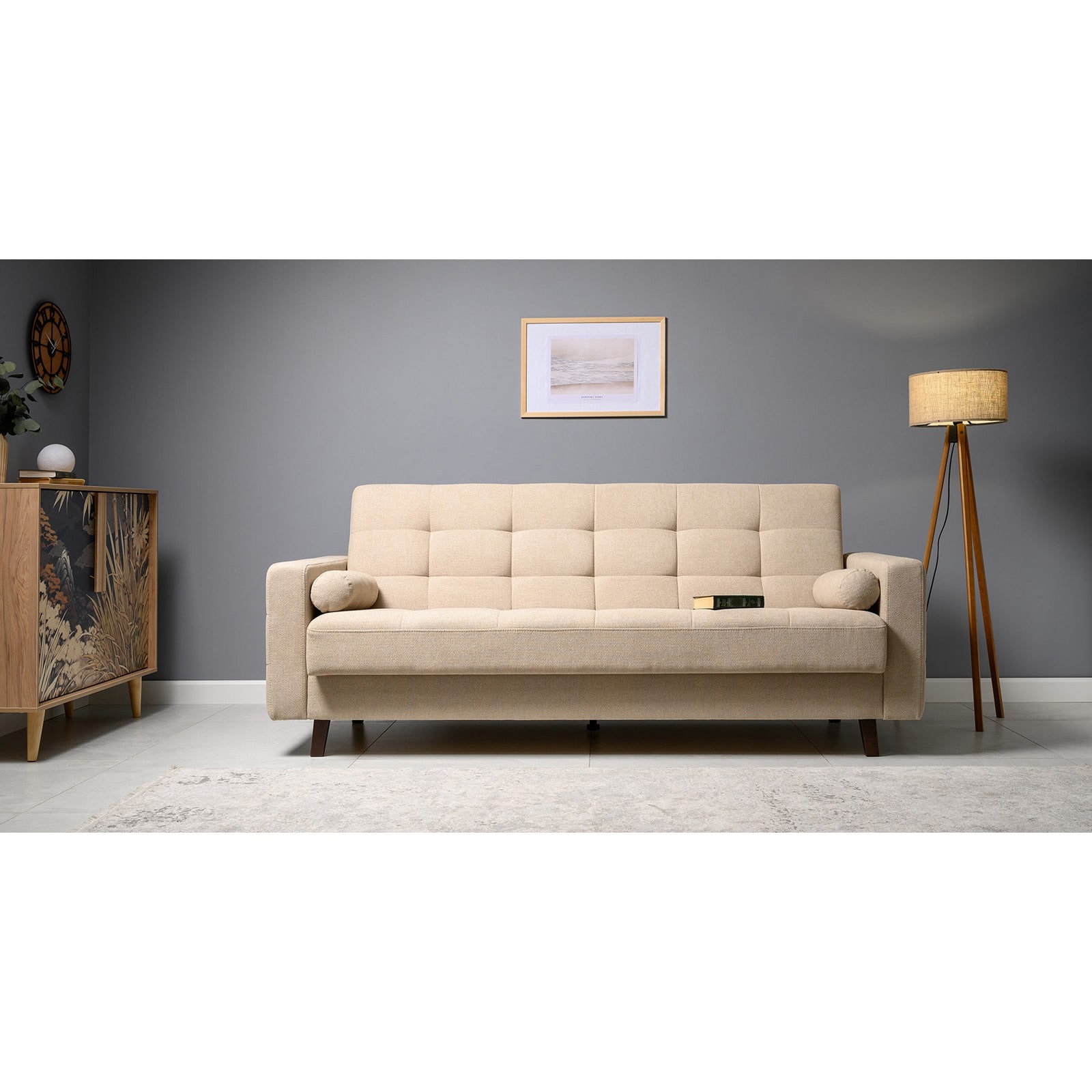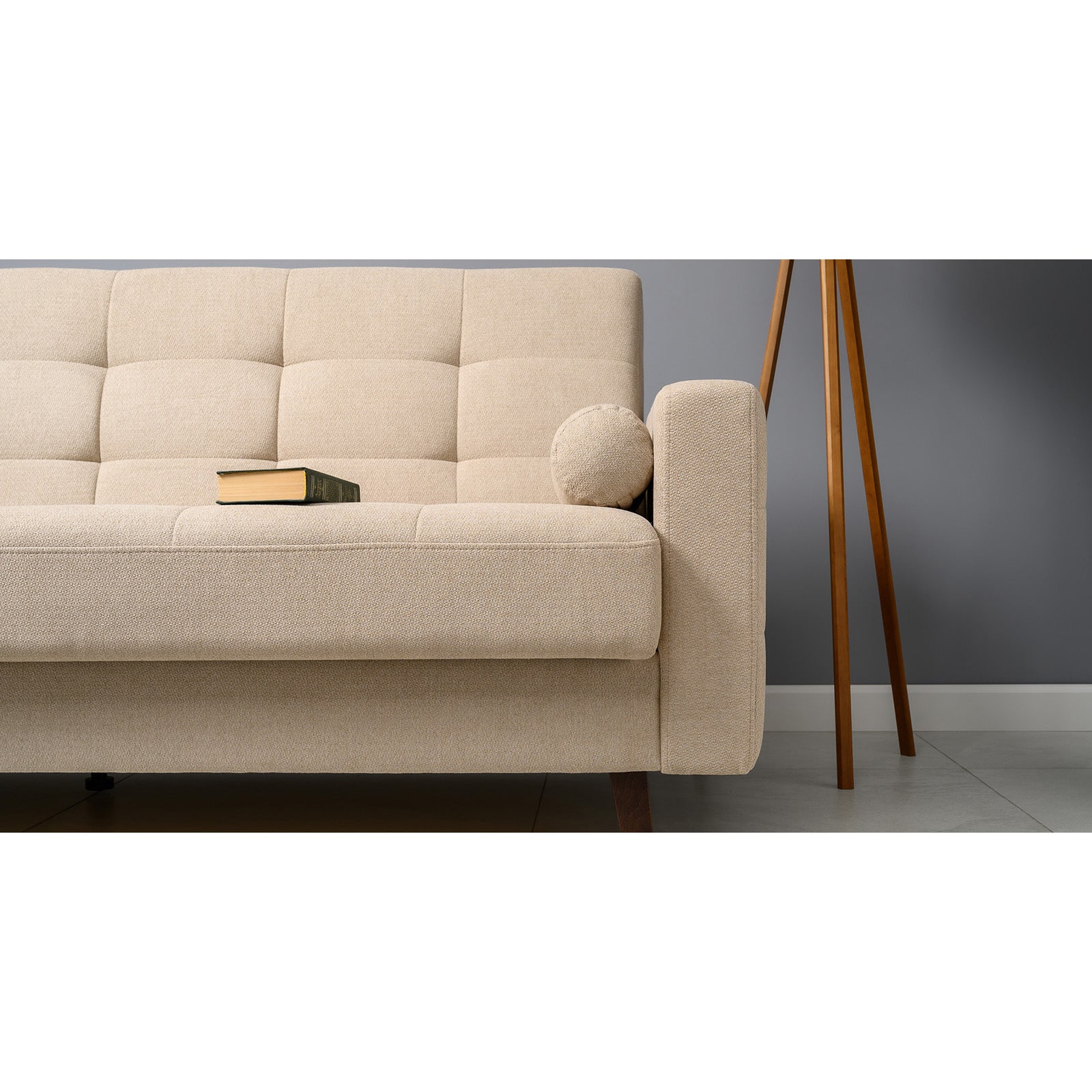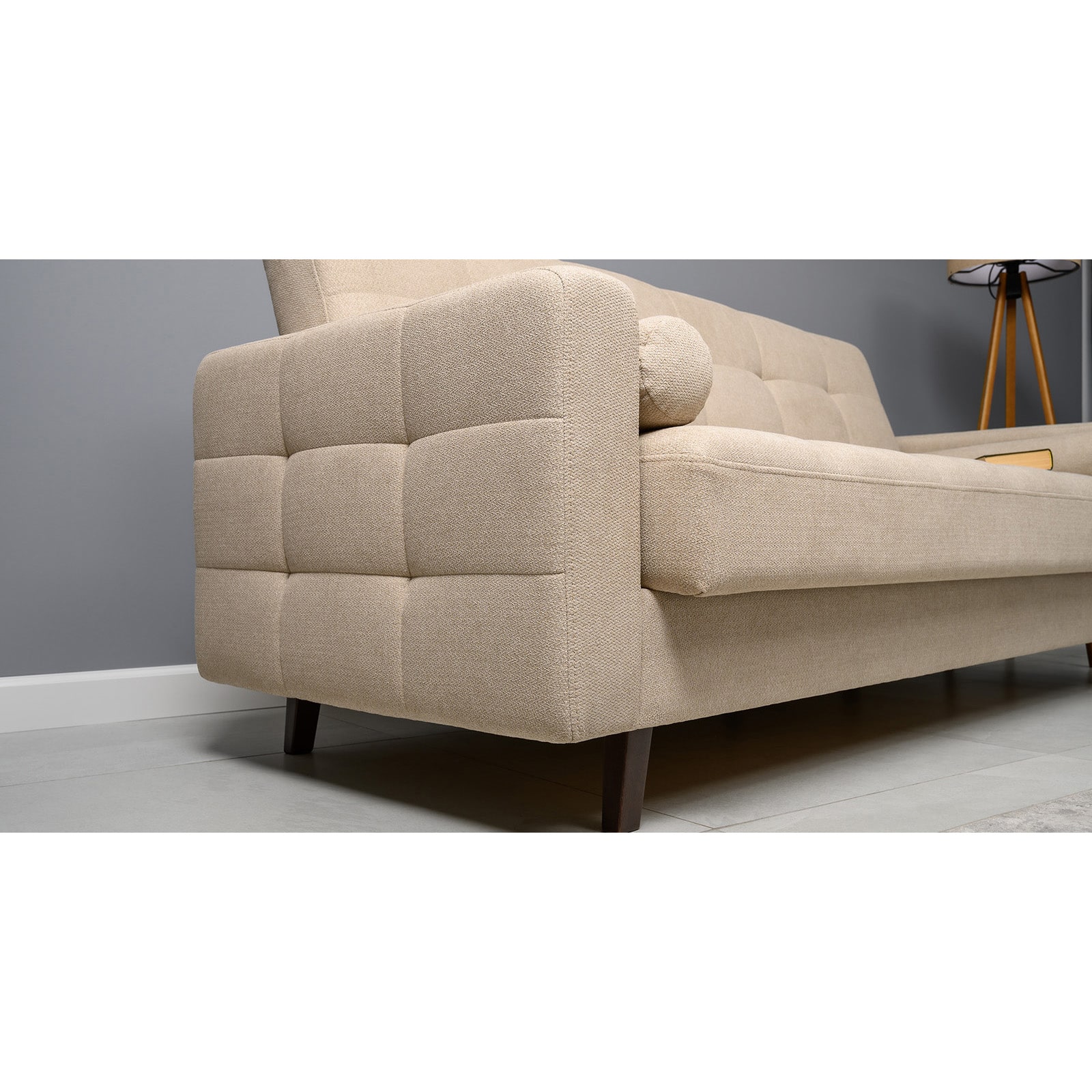 Декор: прямоугольная стежка по спинке, посадочному месту и подлокотниках, круглые подушки-валики.