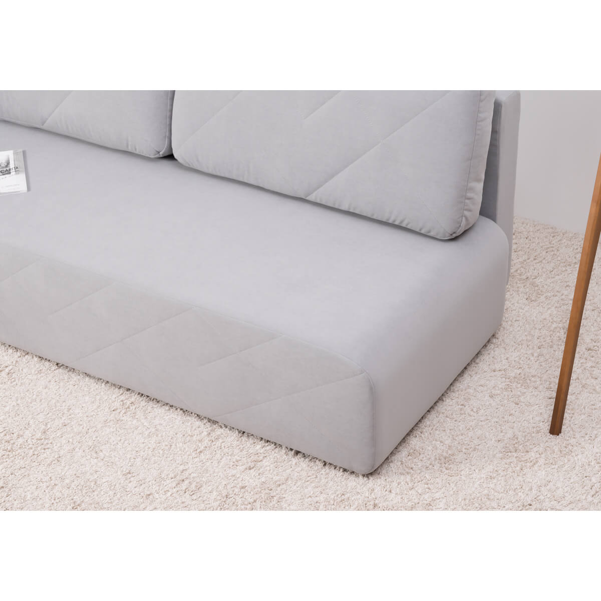 Декор: По передней части приспинных подушек и по передней части дивана проходит оригинальная стежка из диагональных строчек. Закругленные углы корпуса подчеркивают мягкие линии изделия, создают ощущение уюта и безопасности, а также отлично сочетаются с общей концепцией лаконичного дизайна.