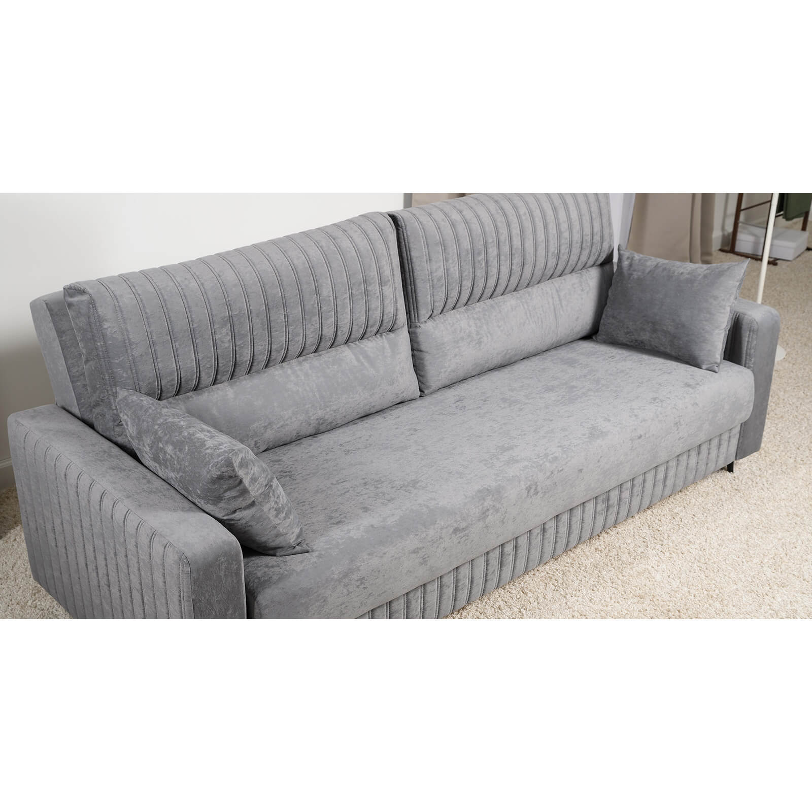 Основные преимущества: супермягкость, высокая износостойкость, легкая чистка, фактура с краш-эффектом.