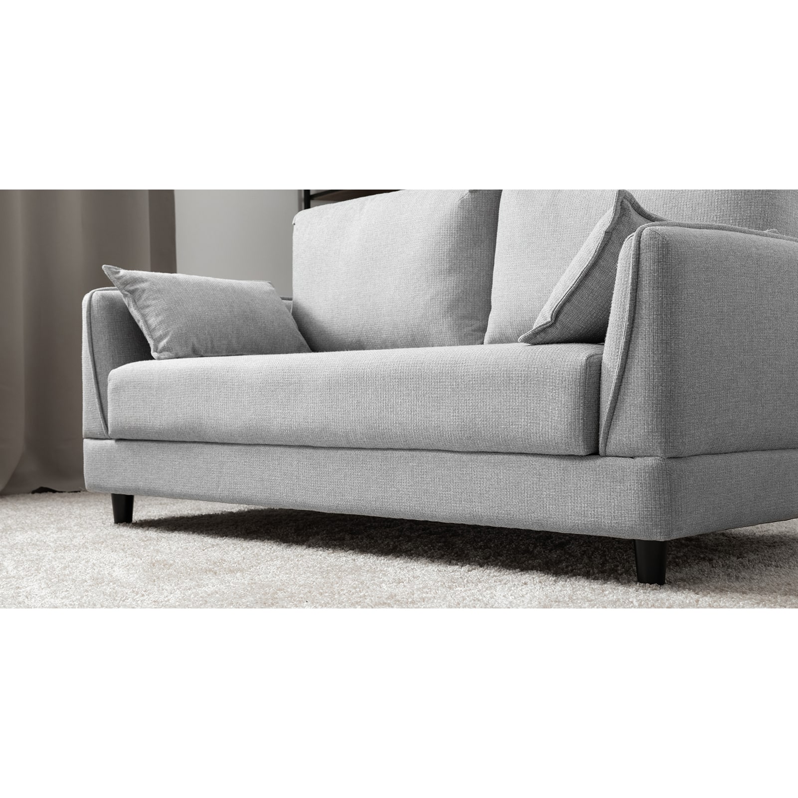 Лаконичный дизайн с деревянными ножками и узкими подлокотниками удачно дополнит не только интерьер гостиной, но и кабинета, и кухни. Кроме того, диван Макс позволяет организовать спальное место в ограниченном пространстве.