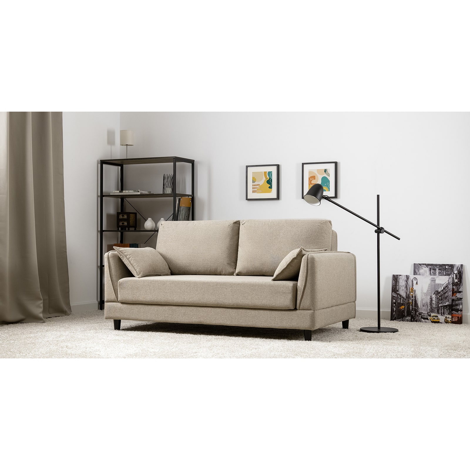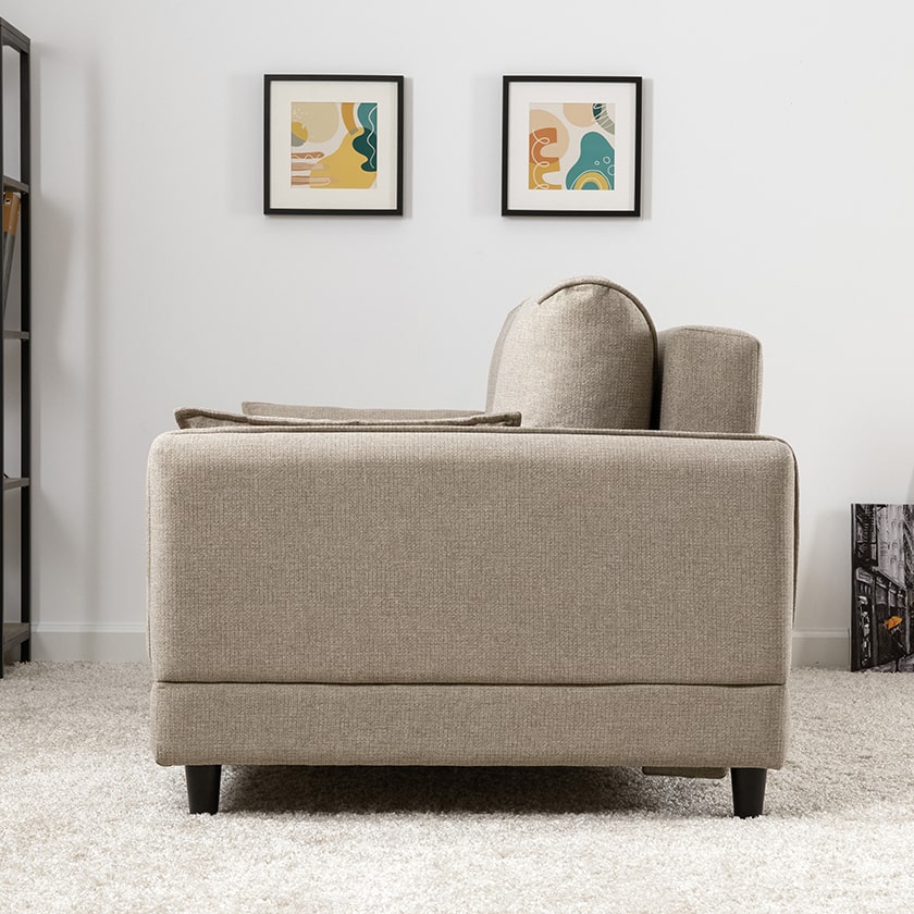 Лаконичный дизайн с деревянными ножками и узкими подлокотниками удачно дополнит не только интерьер гостиной, но и кабинета, и кухни. Кроме того, диван Макс позволяет организовать спальное место в ограниченном пространстве.