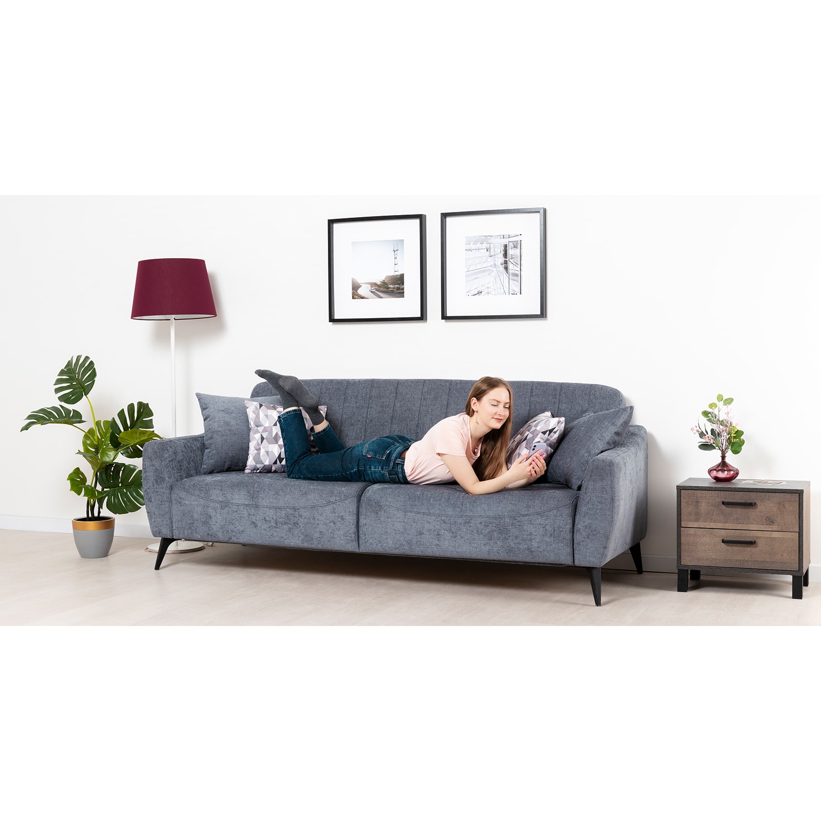 Посадочная и спальная зоны при раскладывании равны, что обеспечивает хороший сон. Механизм трансформации - книжка. Раскладной диван представляет больше возможностей для обустройства интерьера. Черные металлические ножки дивана высотой 160 мм позволят использовать его в интерьере лофт.