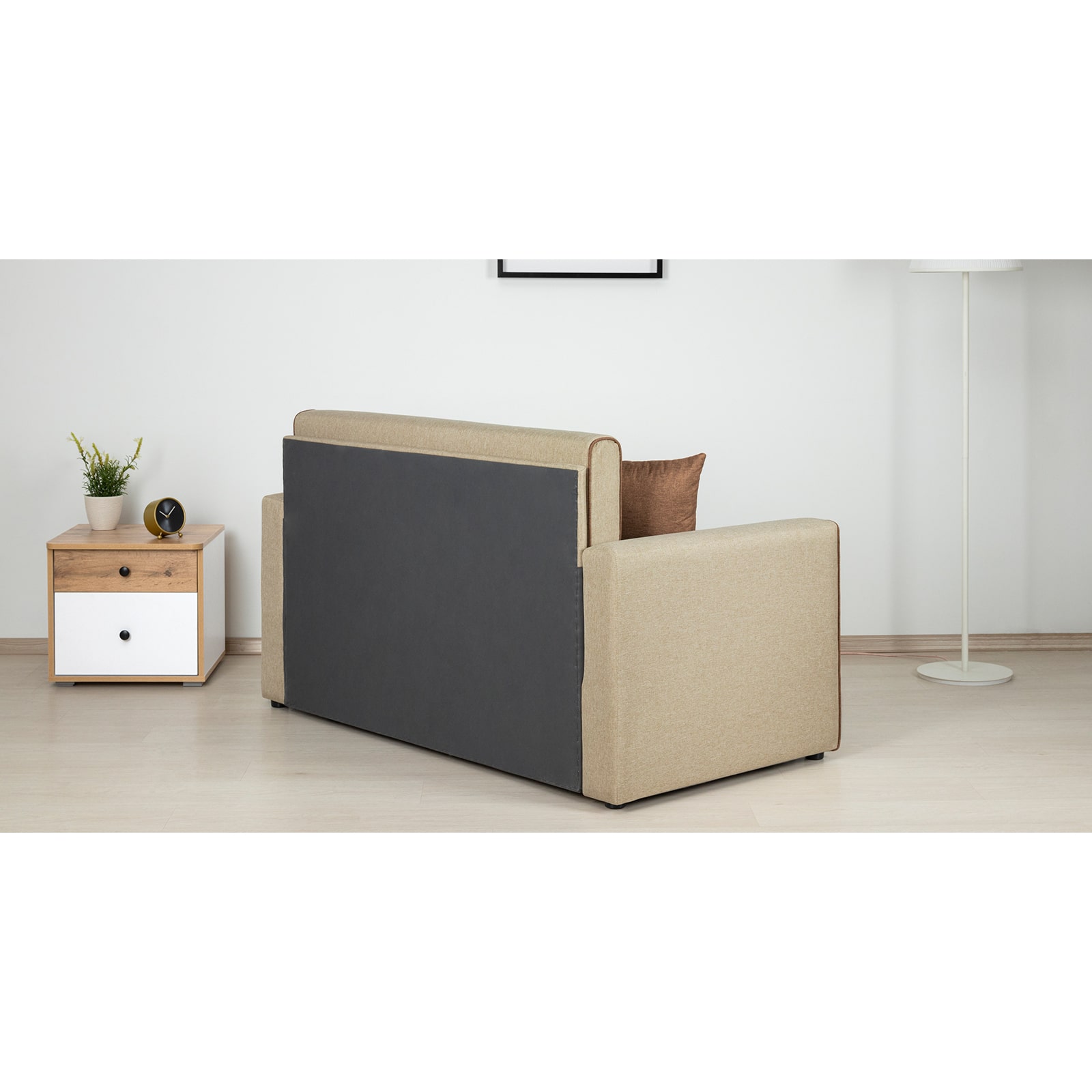 Декоративный контрастный кант по торцу спинки, торцу подлокотника, по верхнему срезу царги. Утяжки с пуговицами на спинке дивана. Две декоративные подушки в контрастной ткани.