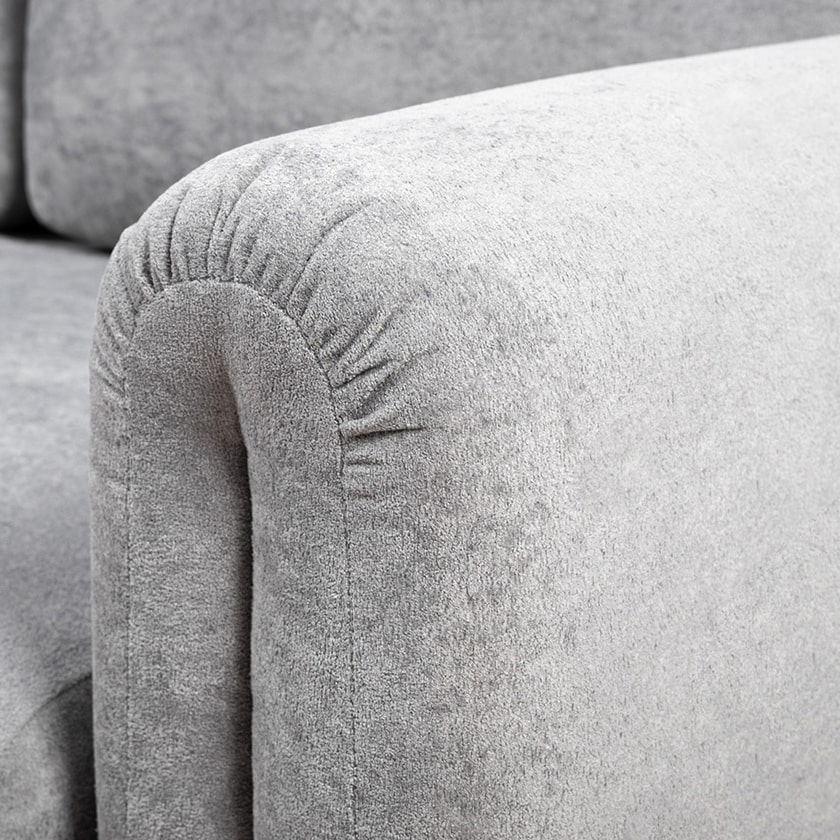 Декоративные утяжки и складки на подлокотниках придают дивану неповторимый шарм, который станет изюминкой любого интерьера — от классического до современного. Приспинные подушки со сборкой в верхней части.