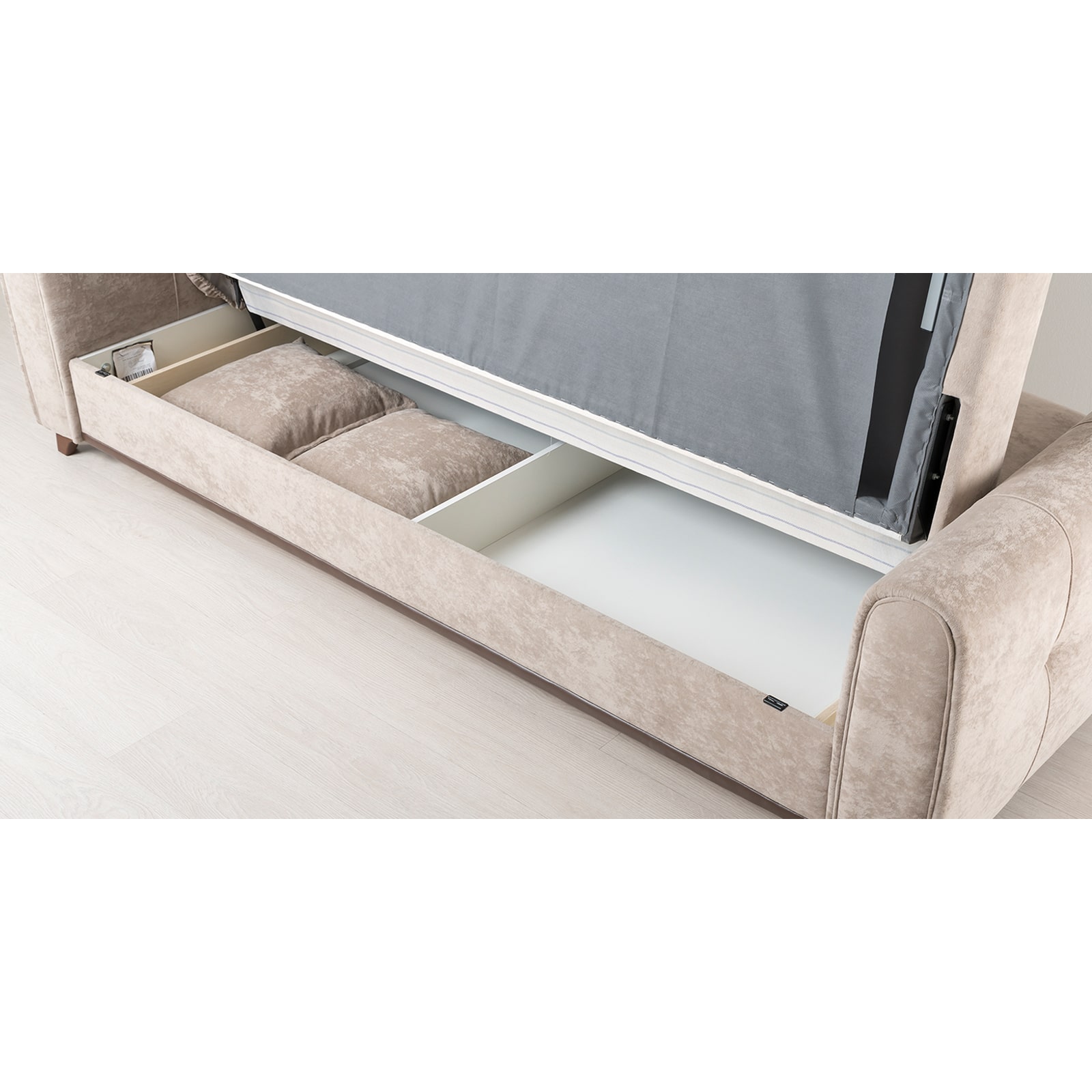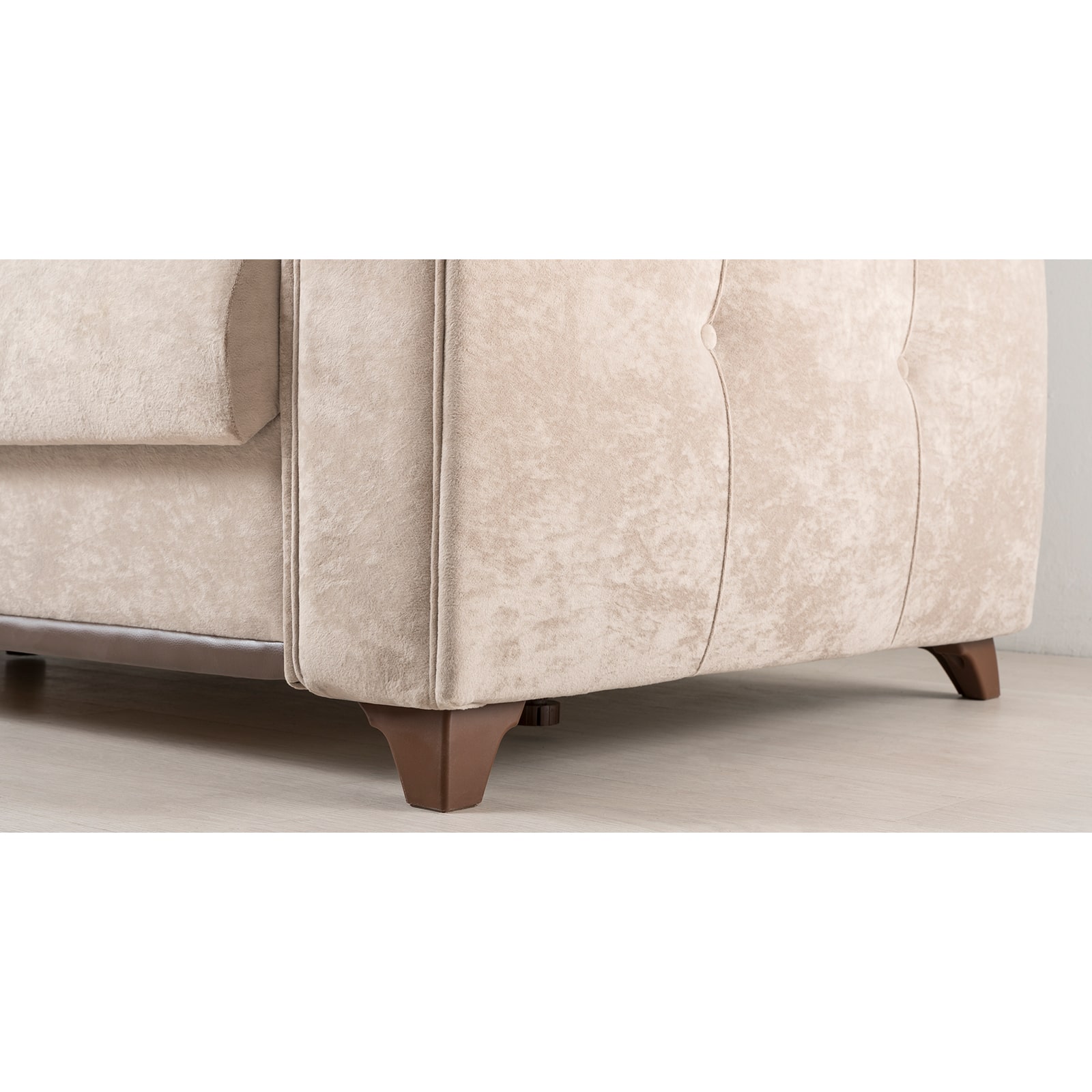 Выполнен в модном мягком велюре ROMANCE оригинальной фактуры. Ткань легко чистится, устойчива к зацепам, обладает повышенной износостойкостью. Благодаря особой технологии гладкого крашения Frozen Flower на поверхности ткани присутствует легкий краш–эффект, подчеркивающий невероятно мягкую фактуру ткани.