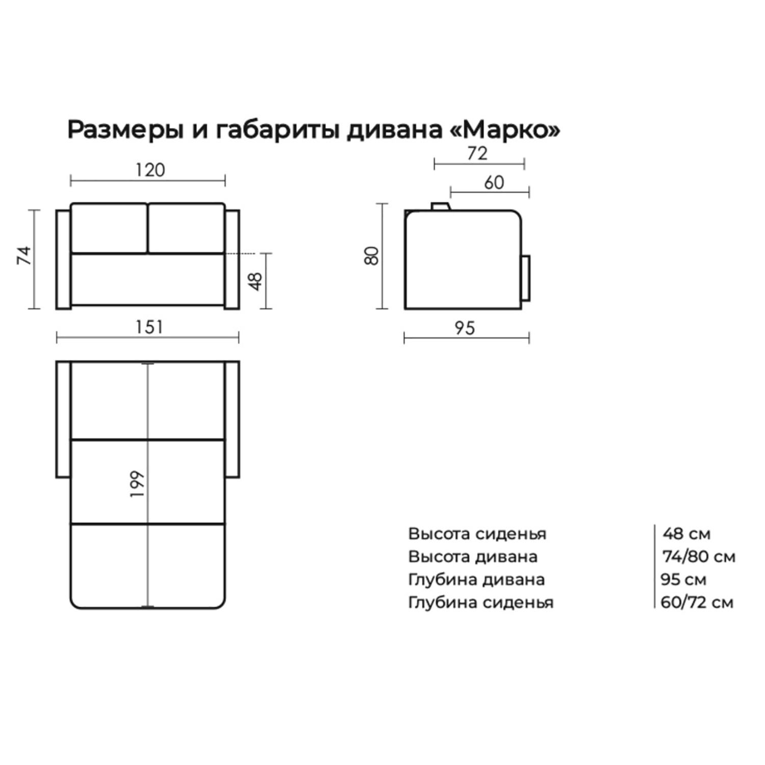 Высота сиденья: 480 мм.