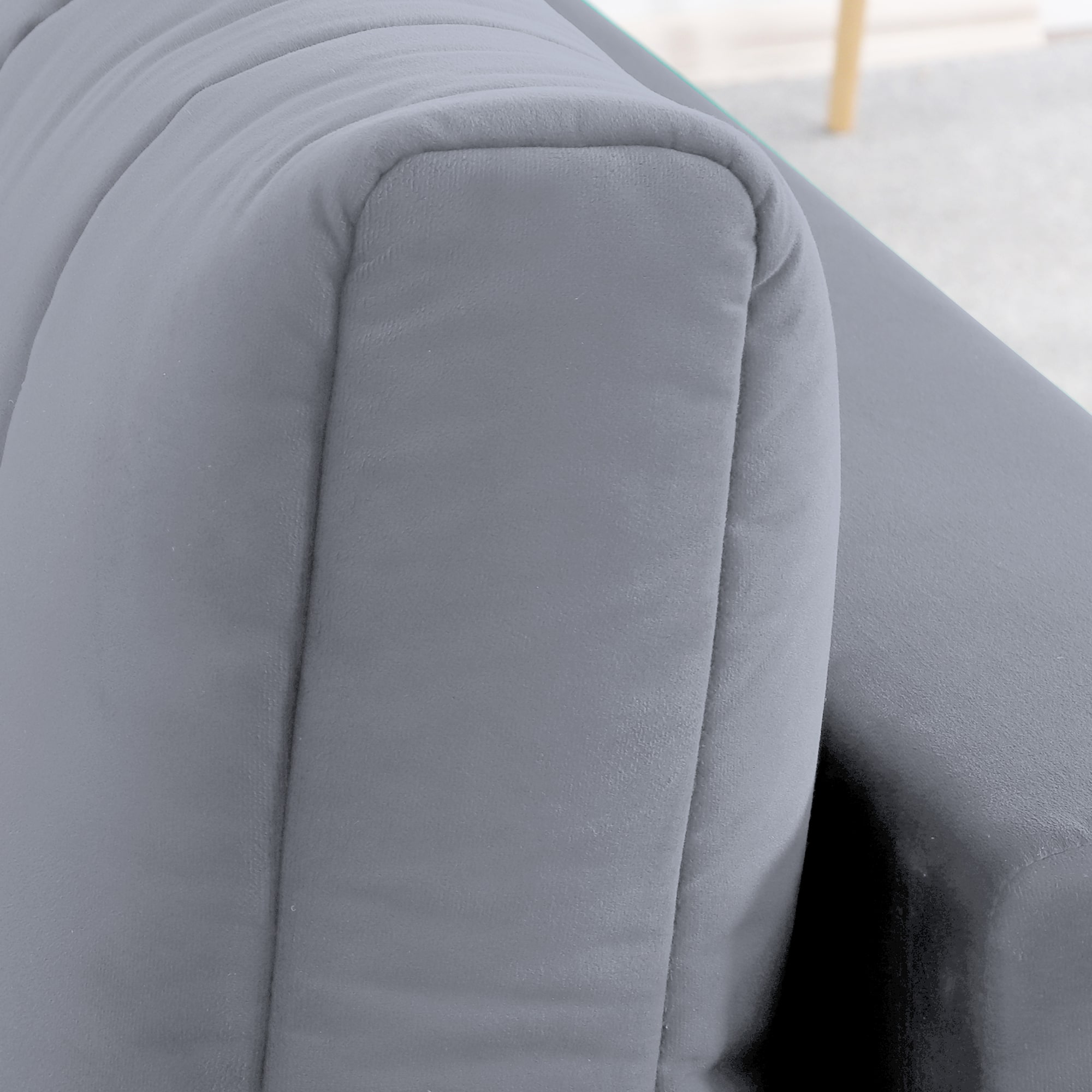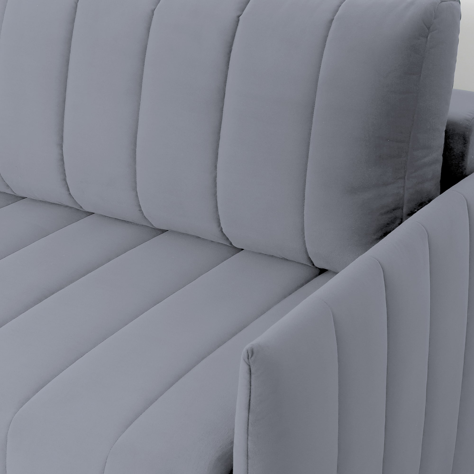 Подушки, сиденье и подлокотники дивана оформлены модной вертикальной стёжкой в современном стиле.