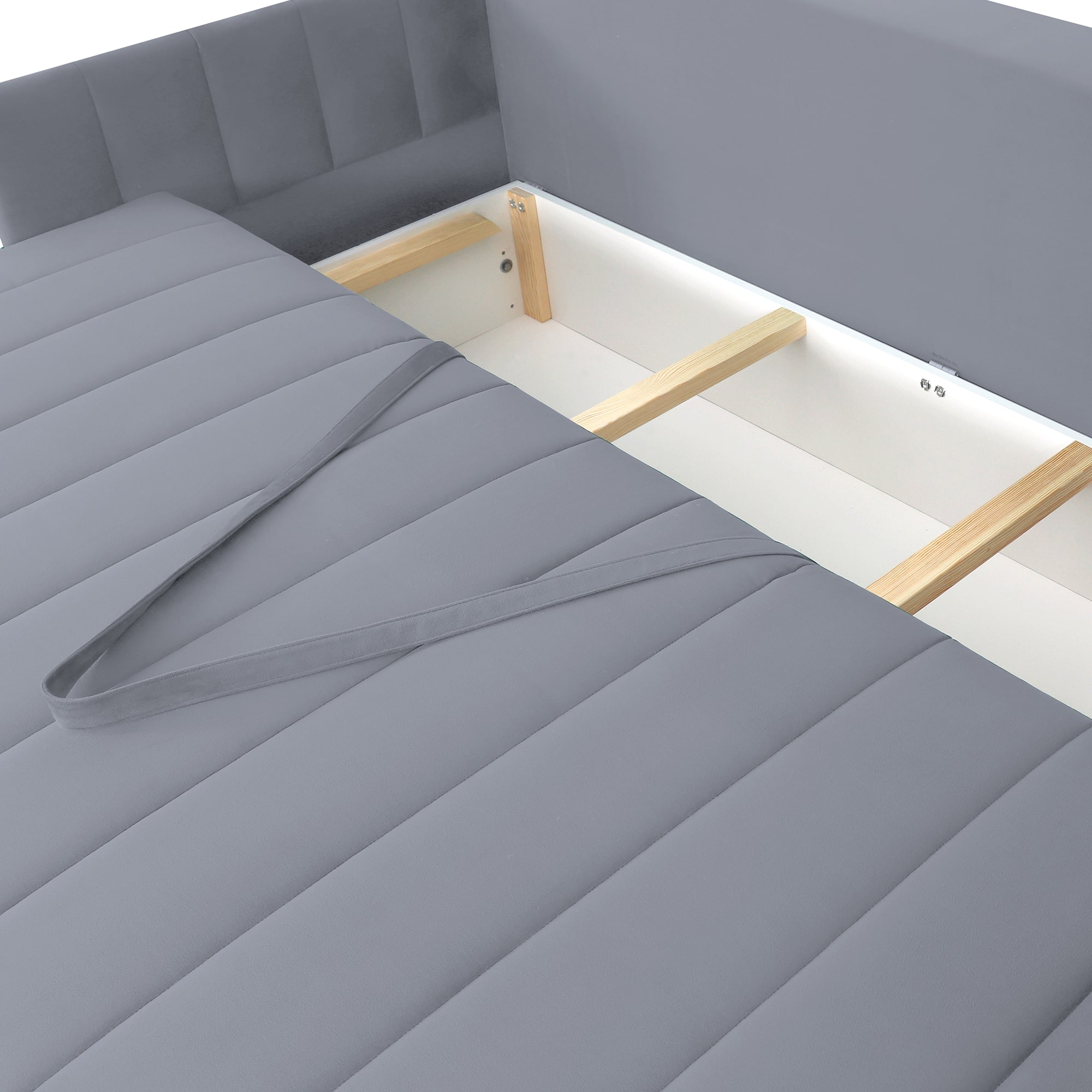 Диван удачно зонирует пространство и дополняет необходимым функционалом. В основании спального места блок независимых пружин для комфортного сна. Вместительный ящик для хранения постельных принадлежностей.
