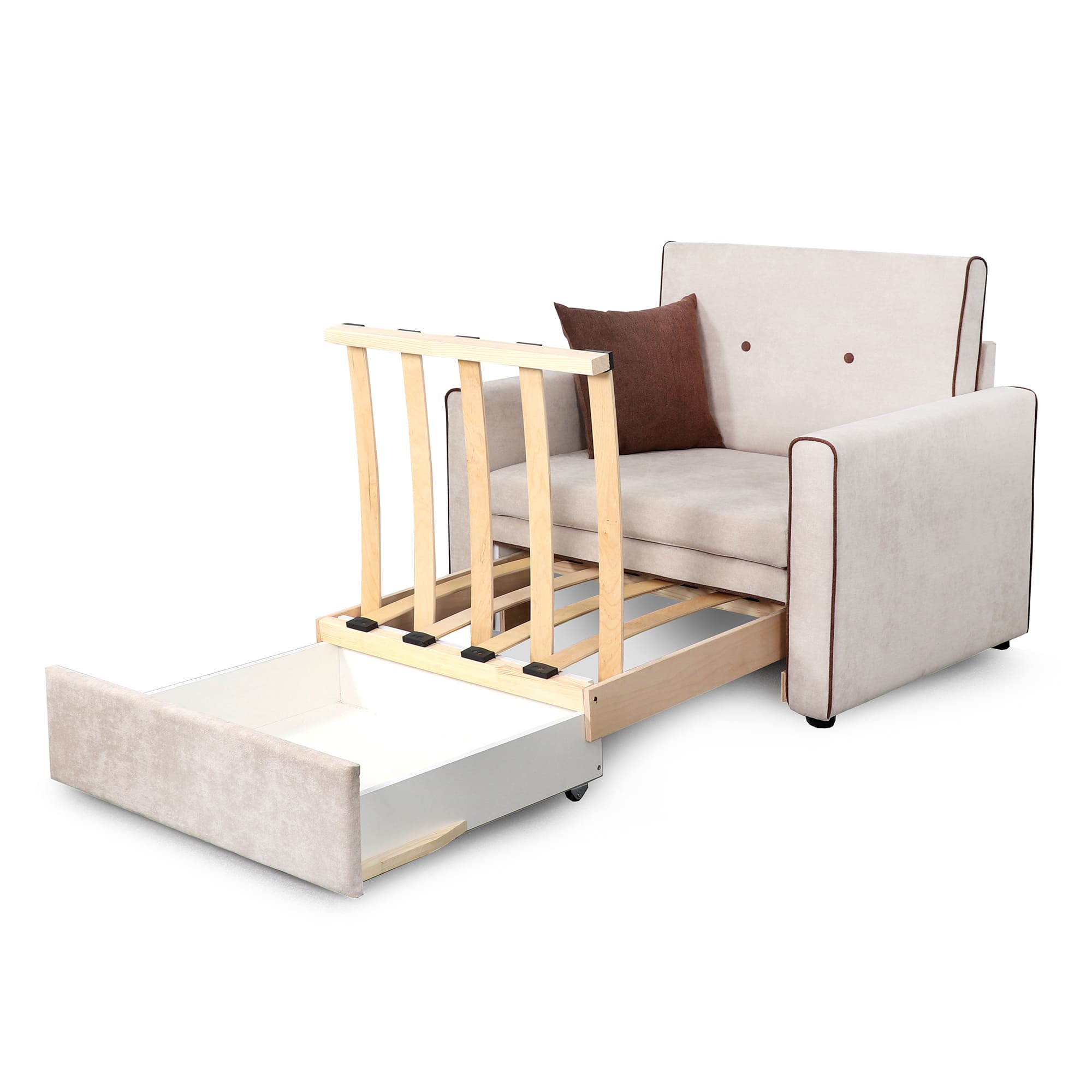Материалы: ЛДСП, фанера, ДСП, ДВП, пиломатериал, пенополиуретан, синтепон, сорель (подушка), массив березы (латы).