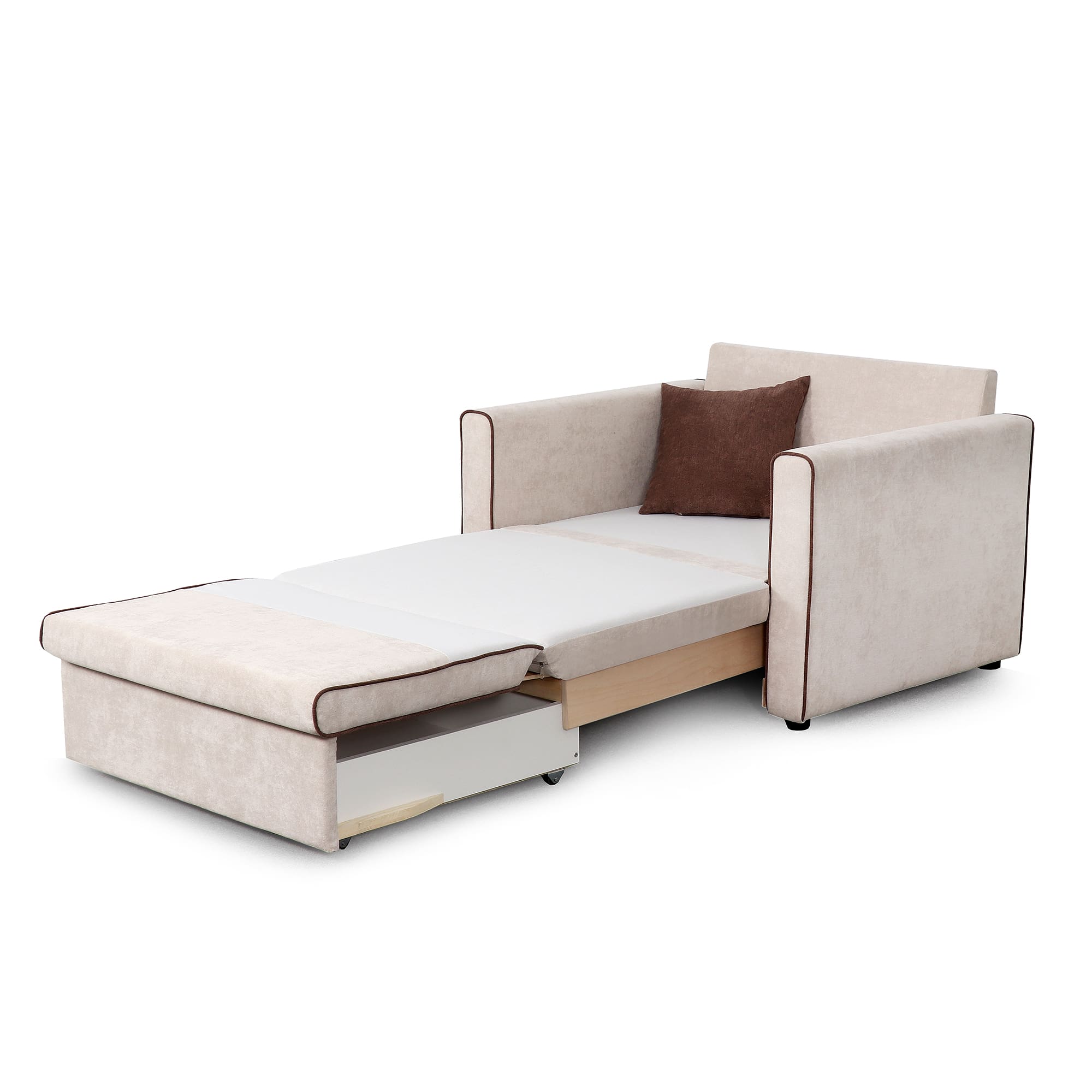 В комплект входит 1 декоративная подушка. Бельевой ящик размером 62х62х13 см позволит разместить постельное белье.